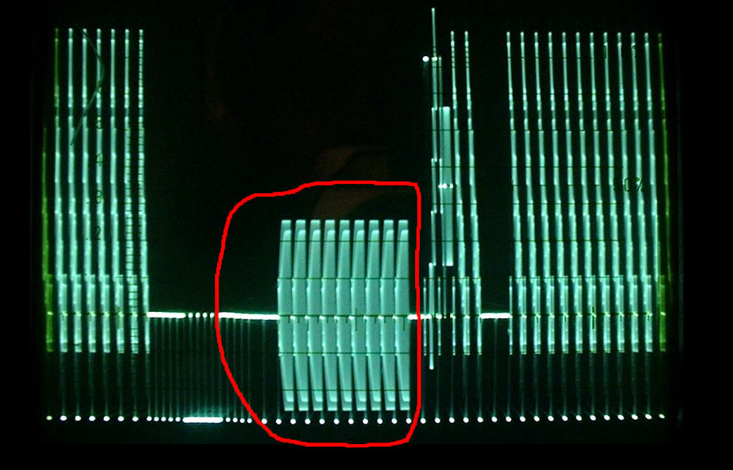 Les 9 bouteilles SECAM présentes dans la partie VBI de la trame :