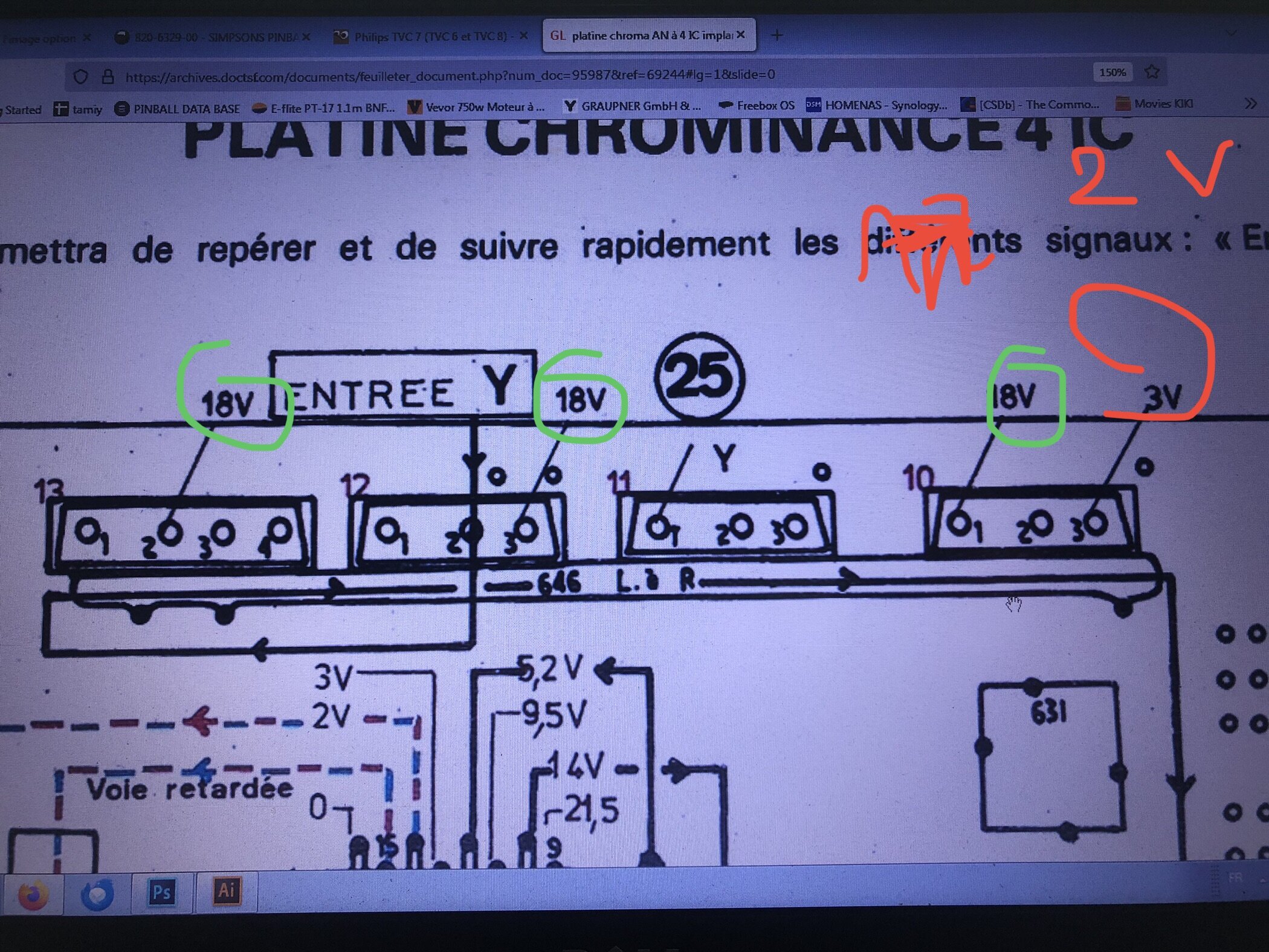 Hello, J’ai fait quelques mesures sur la cartes chrominance, les alimentations semblent conformes au schéma.