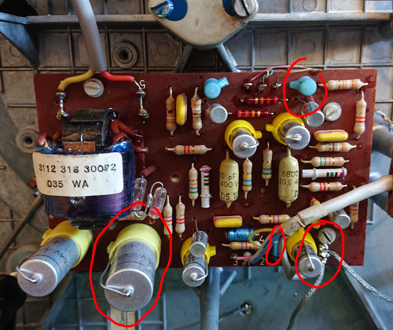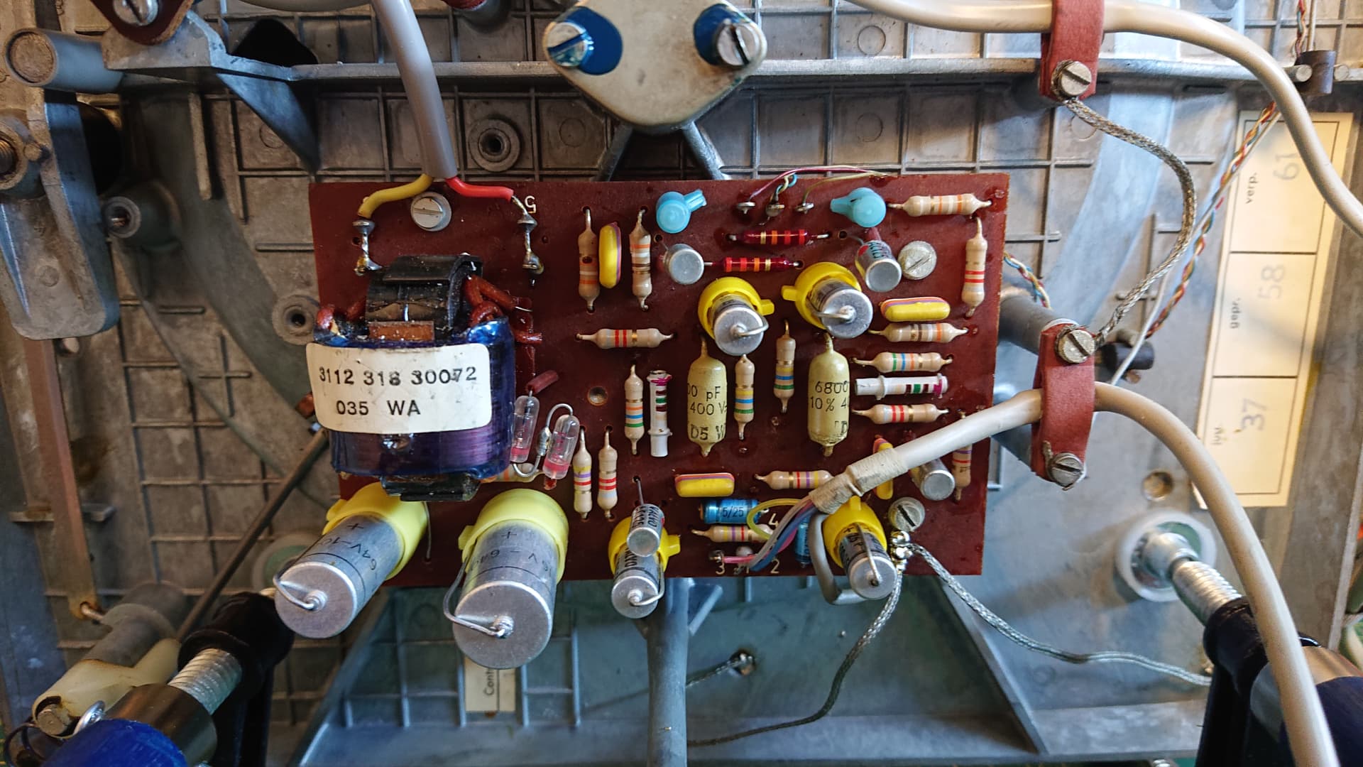 Après coup il y avait 4 sur 12 à changer (valeurs hors norme) donc la fiabilité après 60 ans est relative (courbe en baignoire des condensateurs).