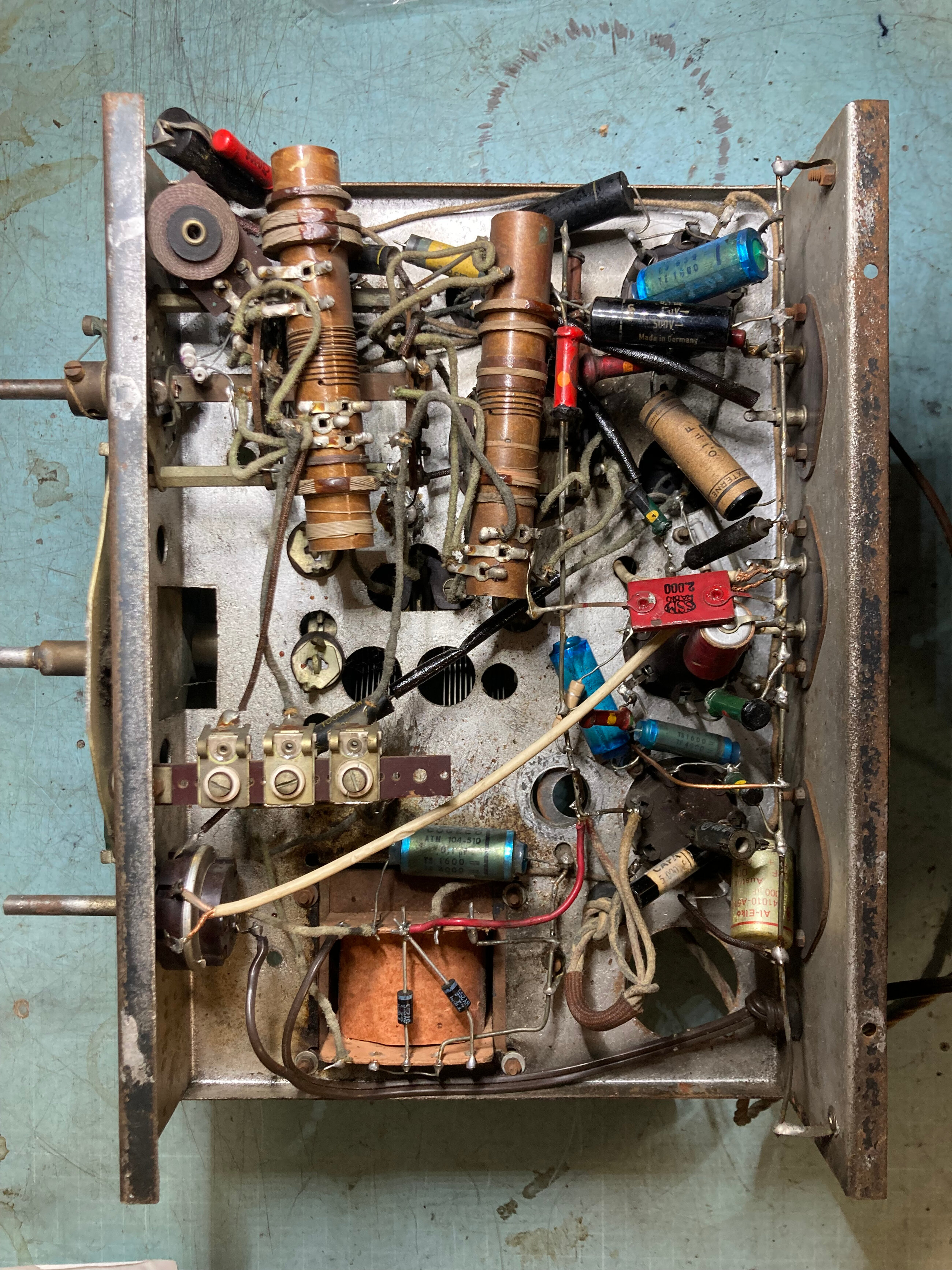 cela c’est une reparation courante a l’epoque quand la lampe se decollait de son support pour reconstituer le blindage de la lampe