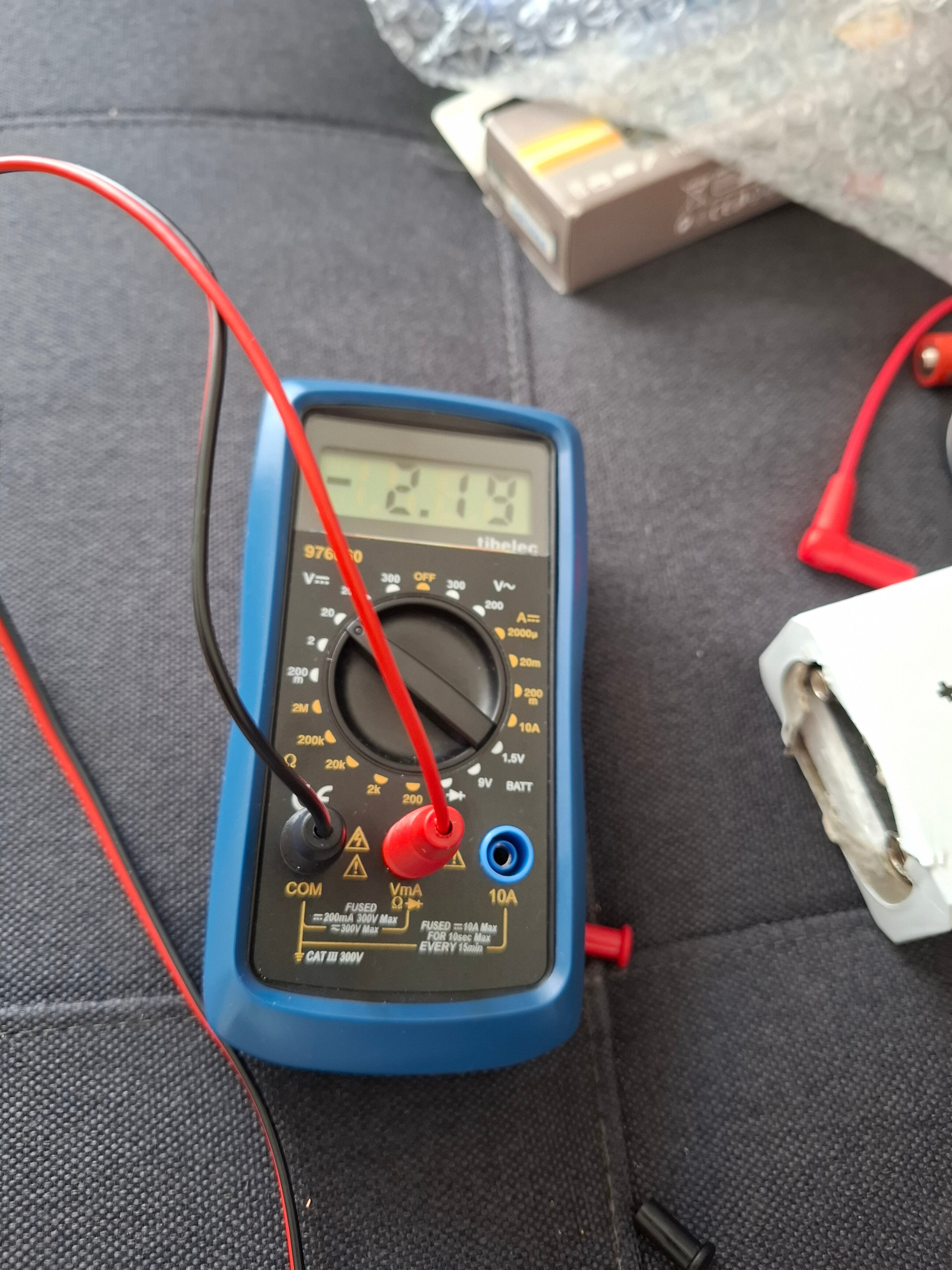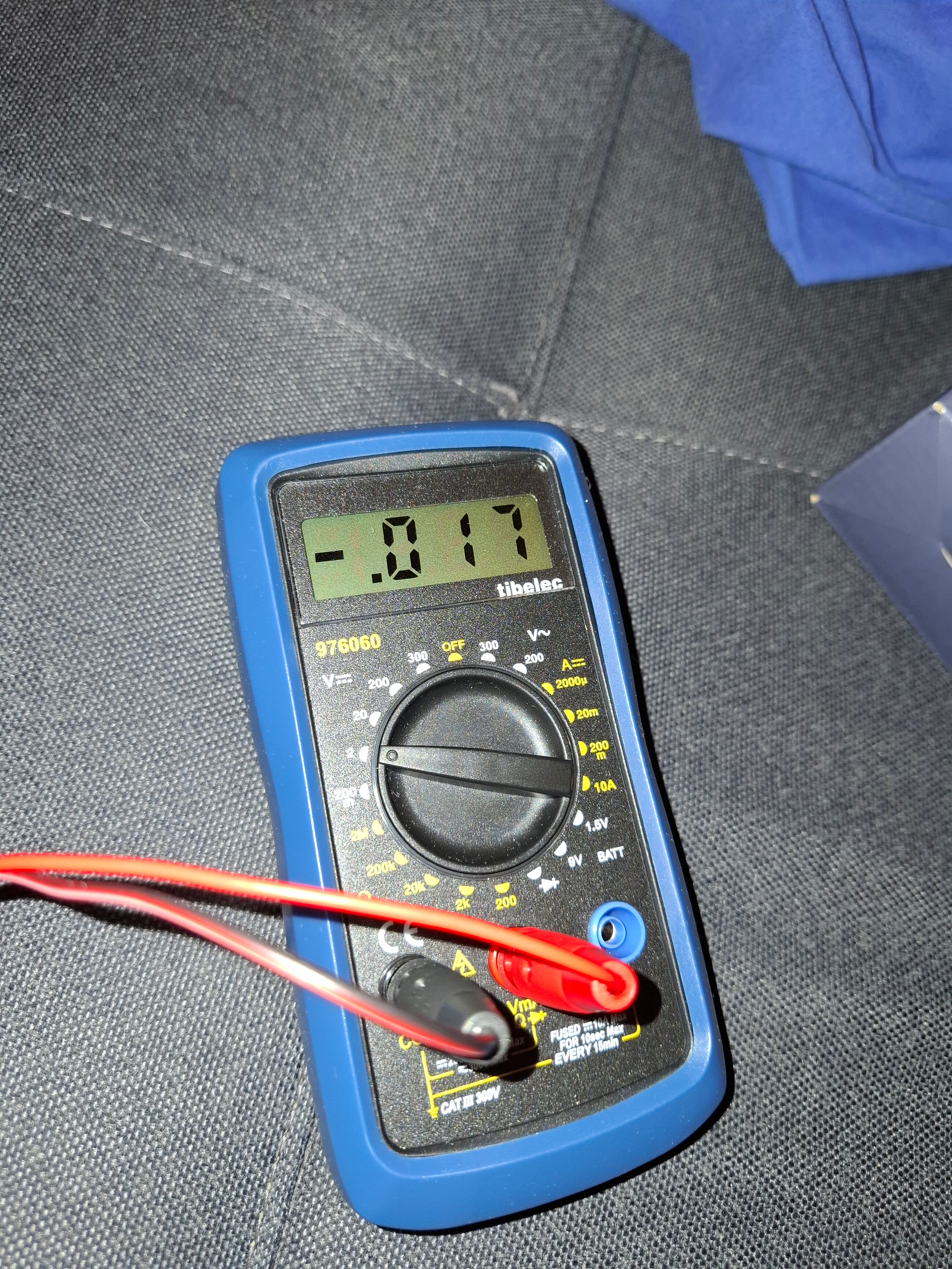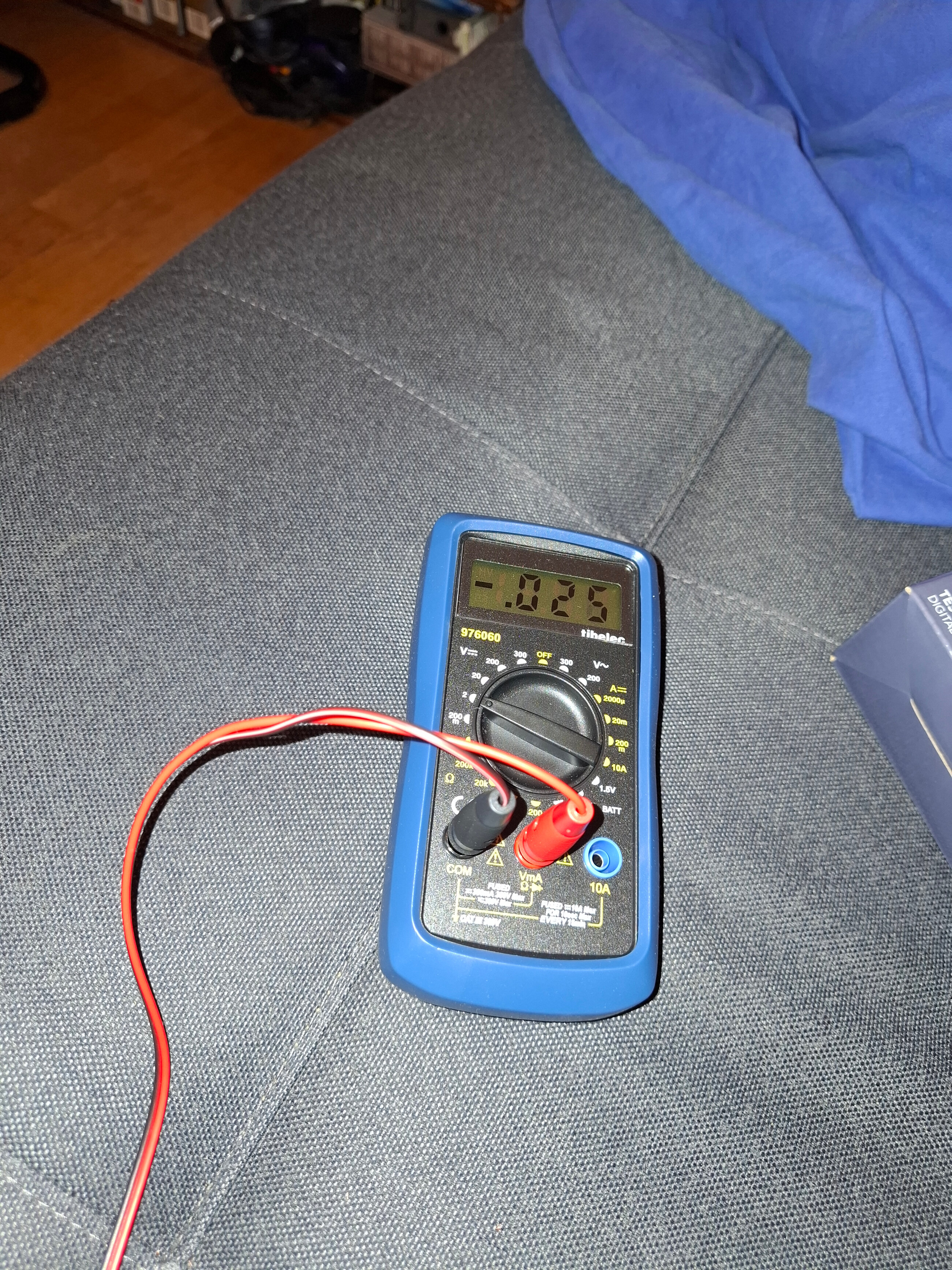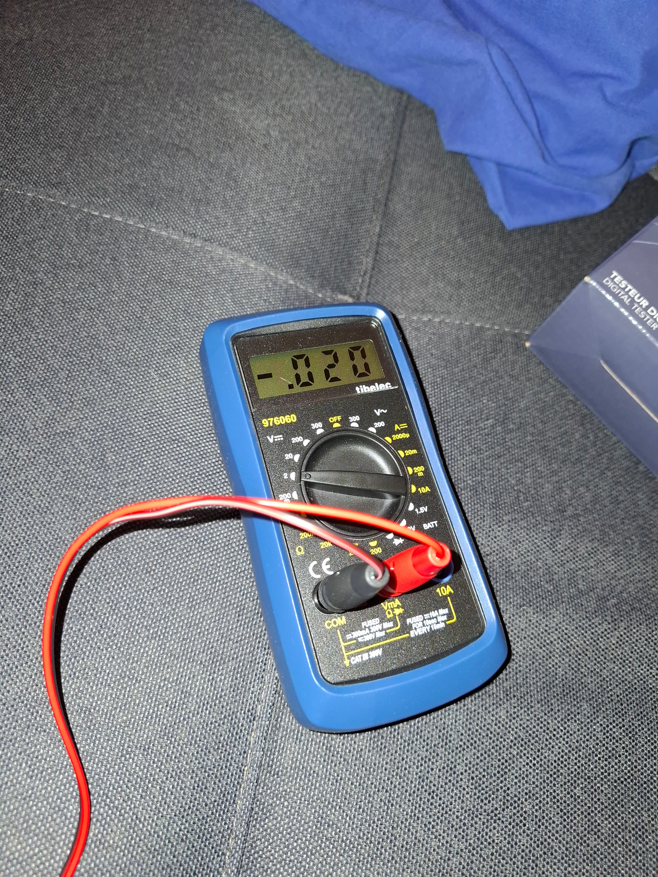 Bonjour, le multimètre était réglé sur le calibre 2 V, je n’avais pas vu.