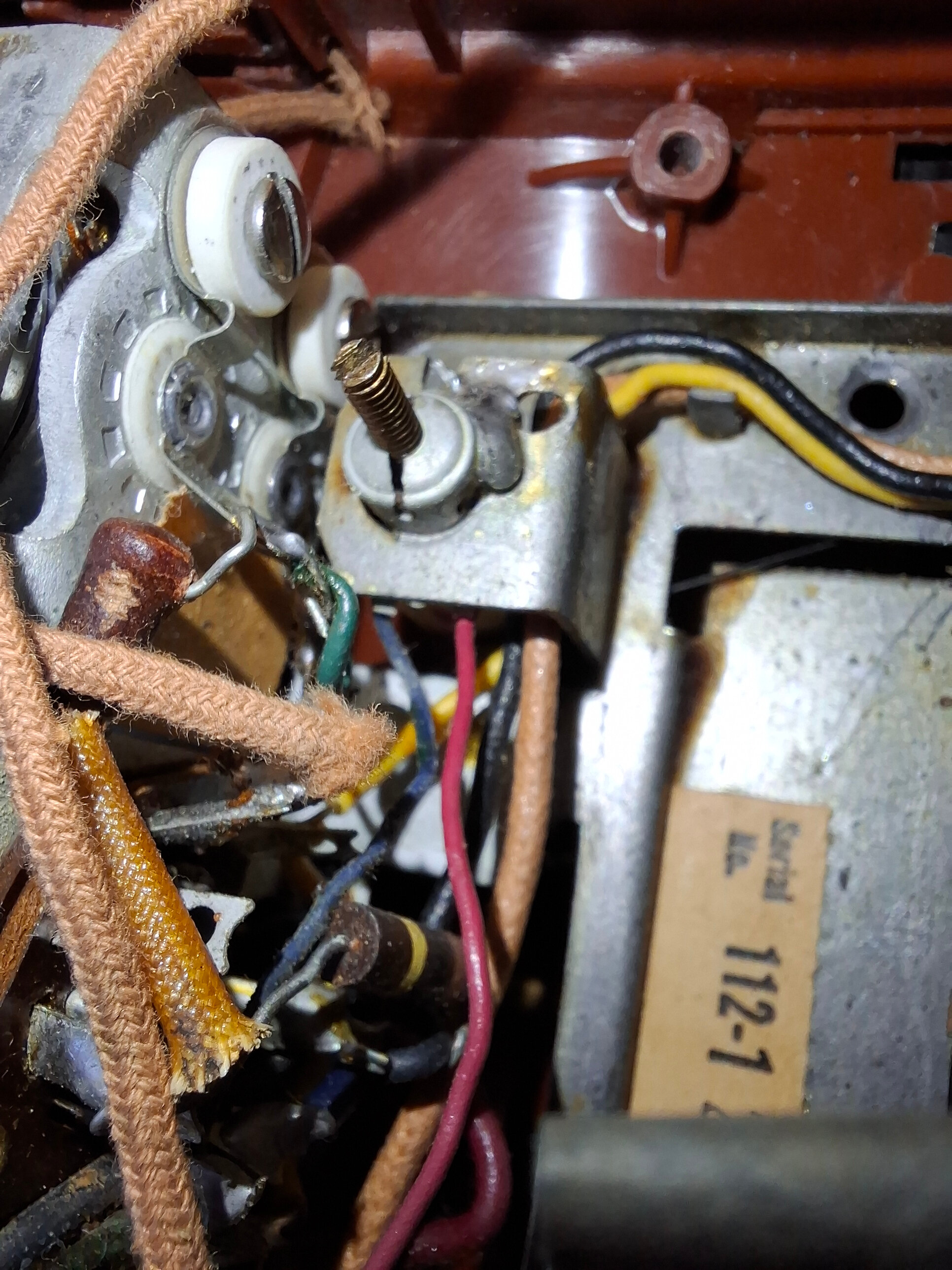 J’en déduis que niveau châssis, ce poste fonctionne comme neuf. En revanche, l’ébénisterie plastique accuse ses 70 ans voir plus. Extrêmement cassante, à tel point qu’il est quasiment impossible de l’ouvrir sans décrocher le couvercle.