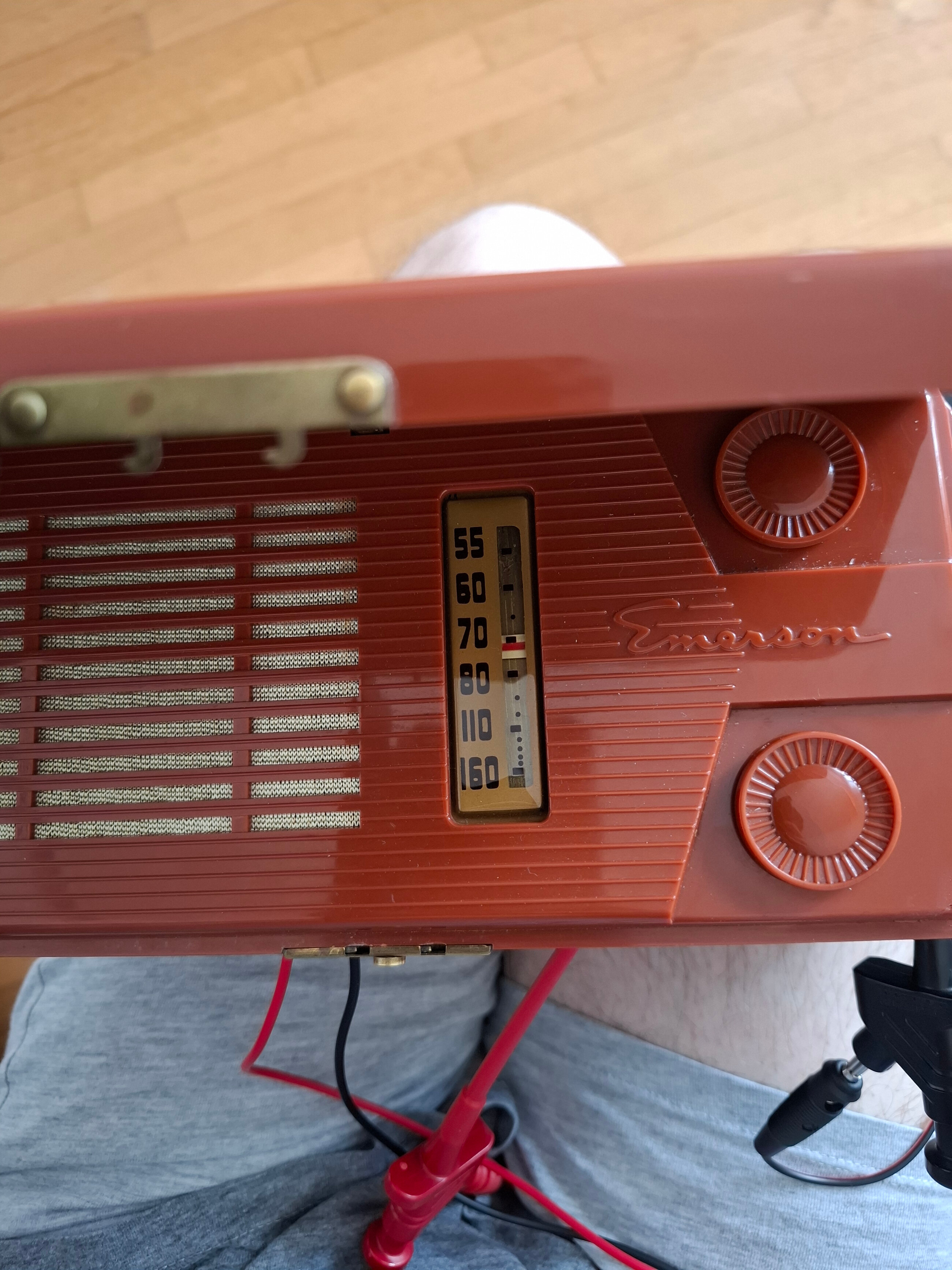 Bonjour, sur la gamme PO vous voulez dire ? J’ai remarqué que si je règle un autre poste proche sur la même fréquence, j’entends un « Clac » très bref dans le haut parleur de l’Emerson. C’est à ça que vous pensez?