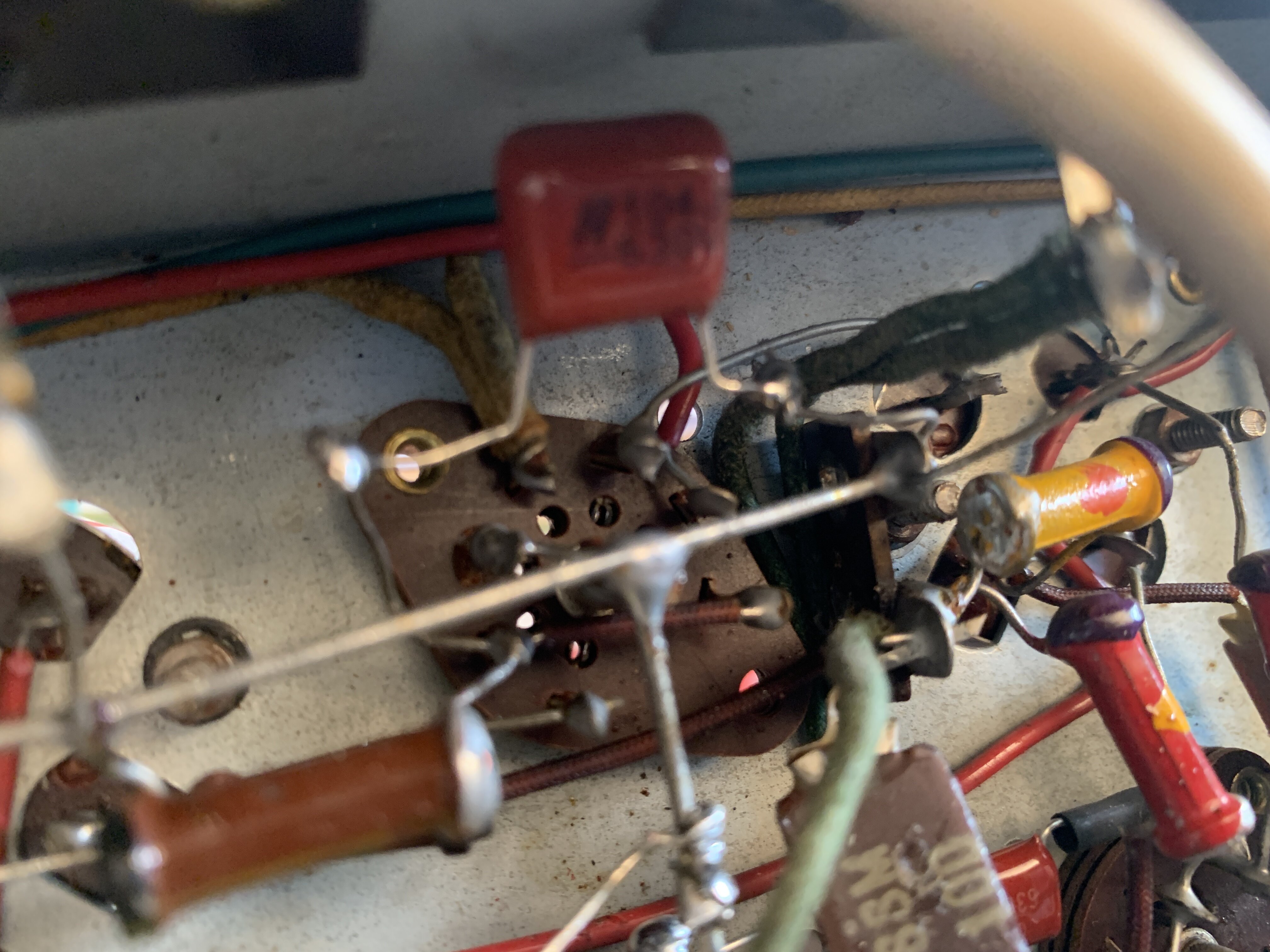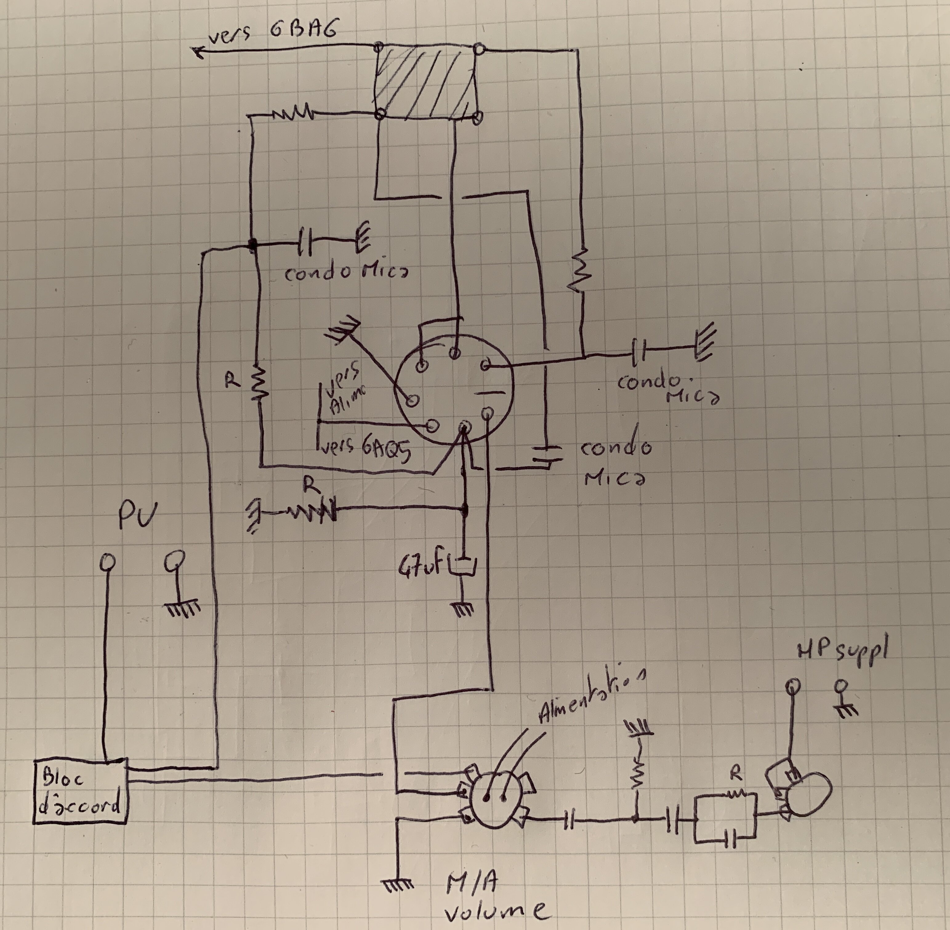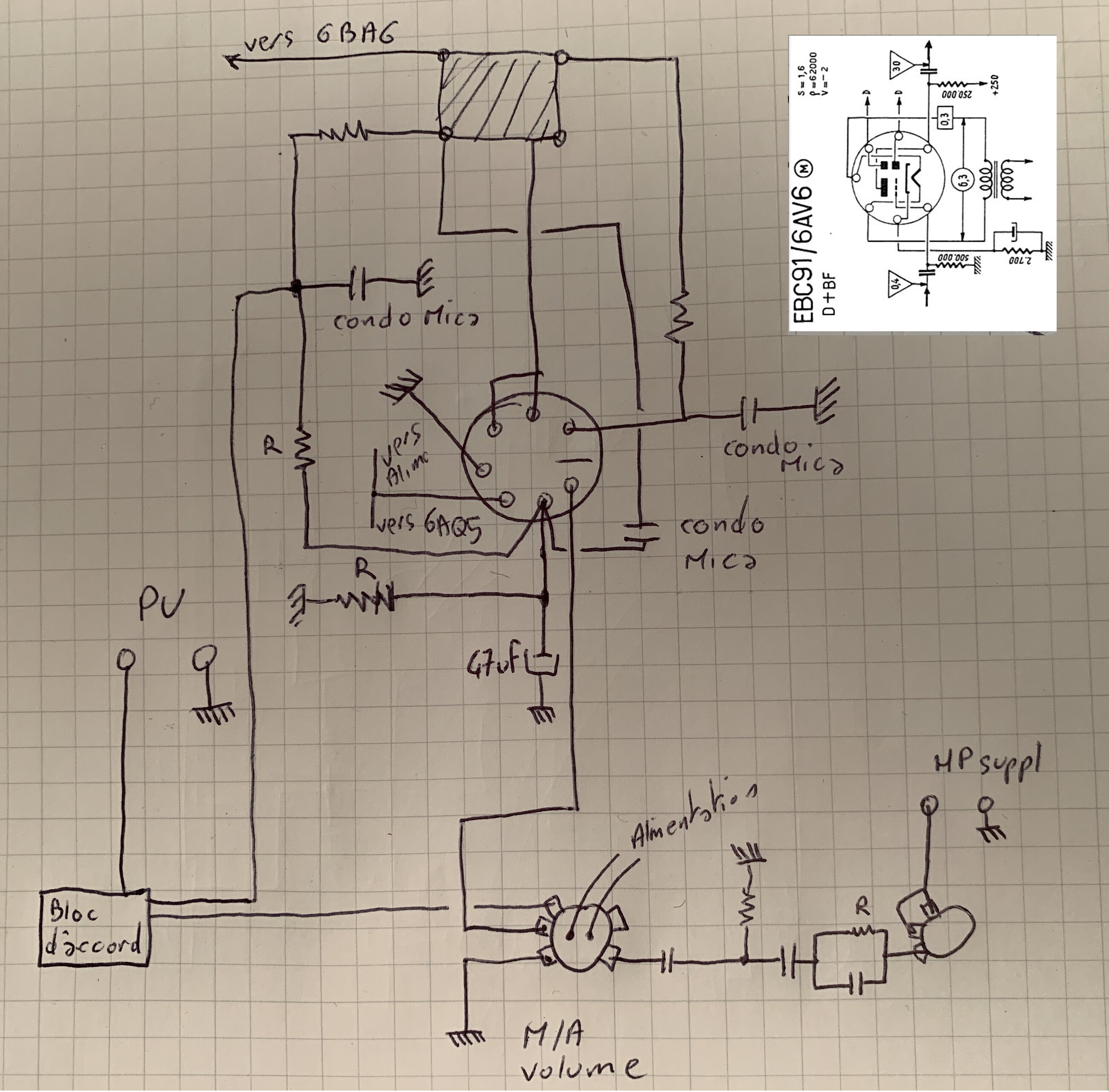 il ne reste plus que l’hypothèse d’une fuite cathode filament sur la 6AV6 ou d’un manque de blindage des fils de la detection