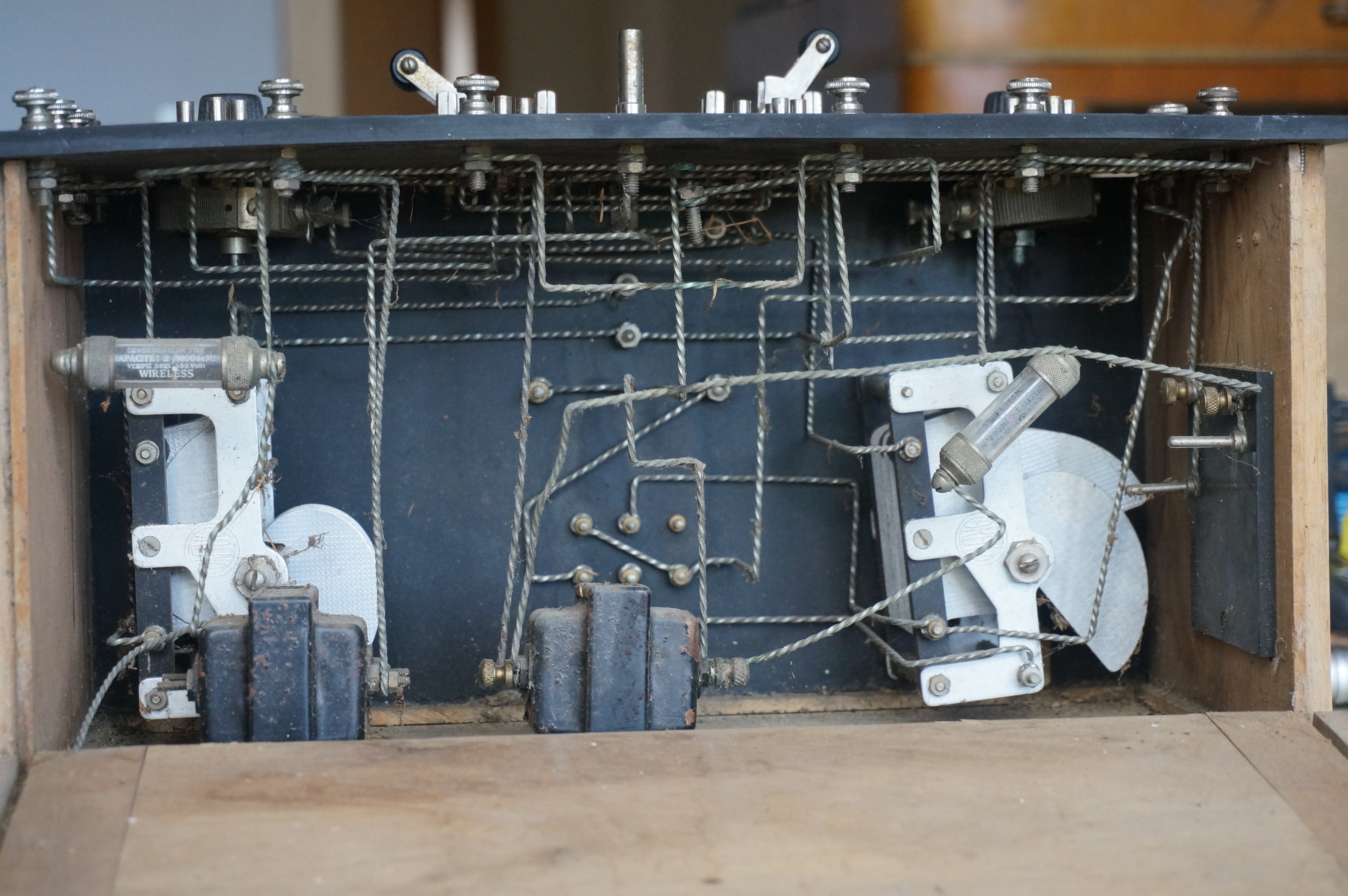 Ce poste de radio utilise le montage très populaire des années 1925, le C-119 bis, reconnaissable à ses trois bobines à broches couplées dont deux sont mobiles, ses 4 lampes, deux transfos BF et 2 CV.