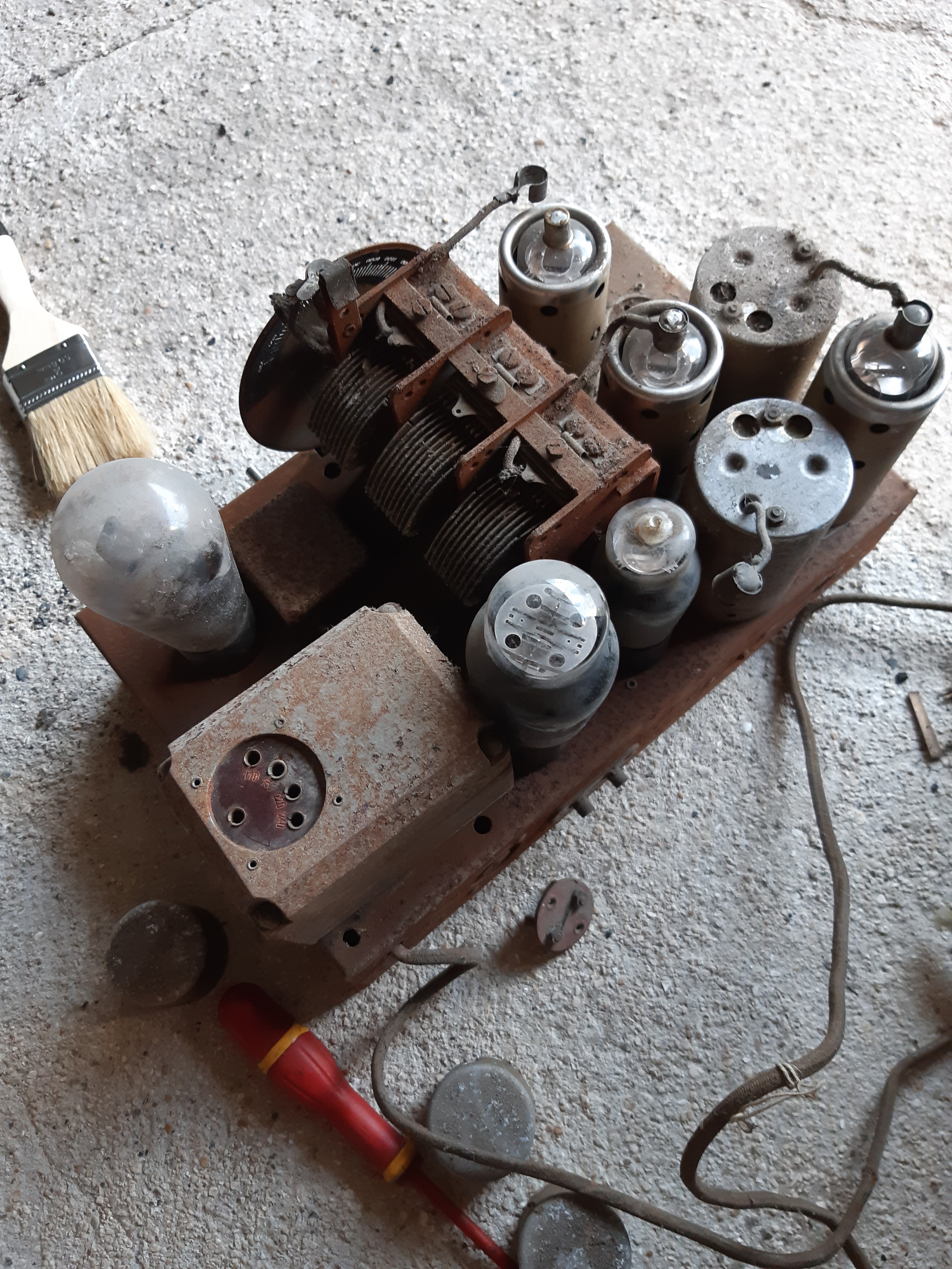 Après le boulot hier, j’ai déniché ce très joli poste des années 30, à 7 lampes (80,56,47,57,58,58 + 1 sans marquage)