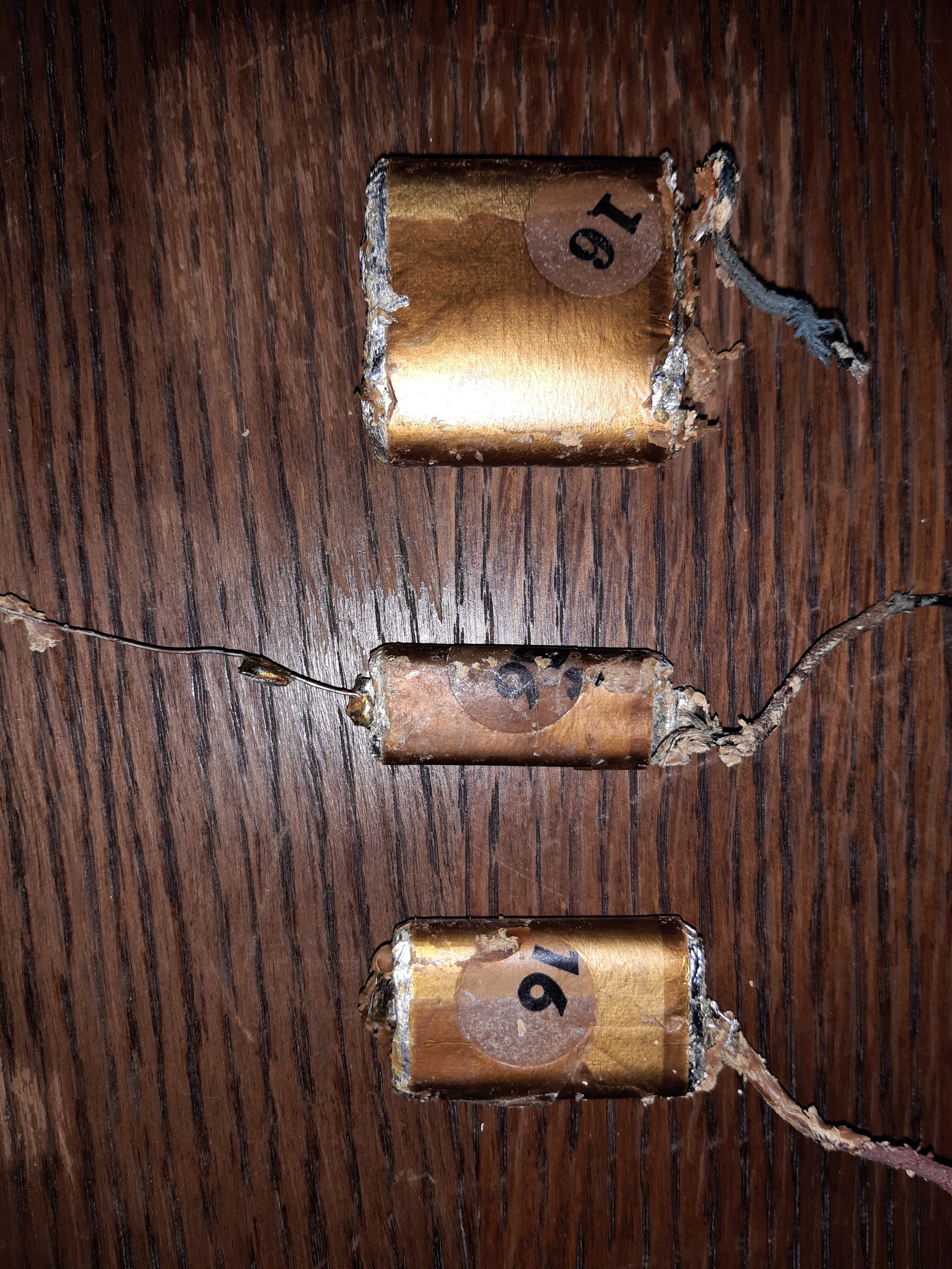 Il s’agissait bien d’une boîte à condos: deux marqués 16 et un marqué 26 (entourés sur le schéma et photo). Quelle est leur unité et sont ils polarisés ?