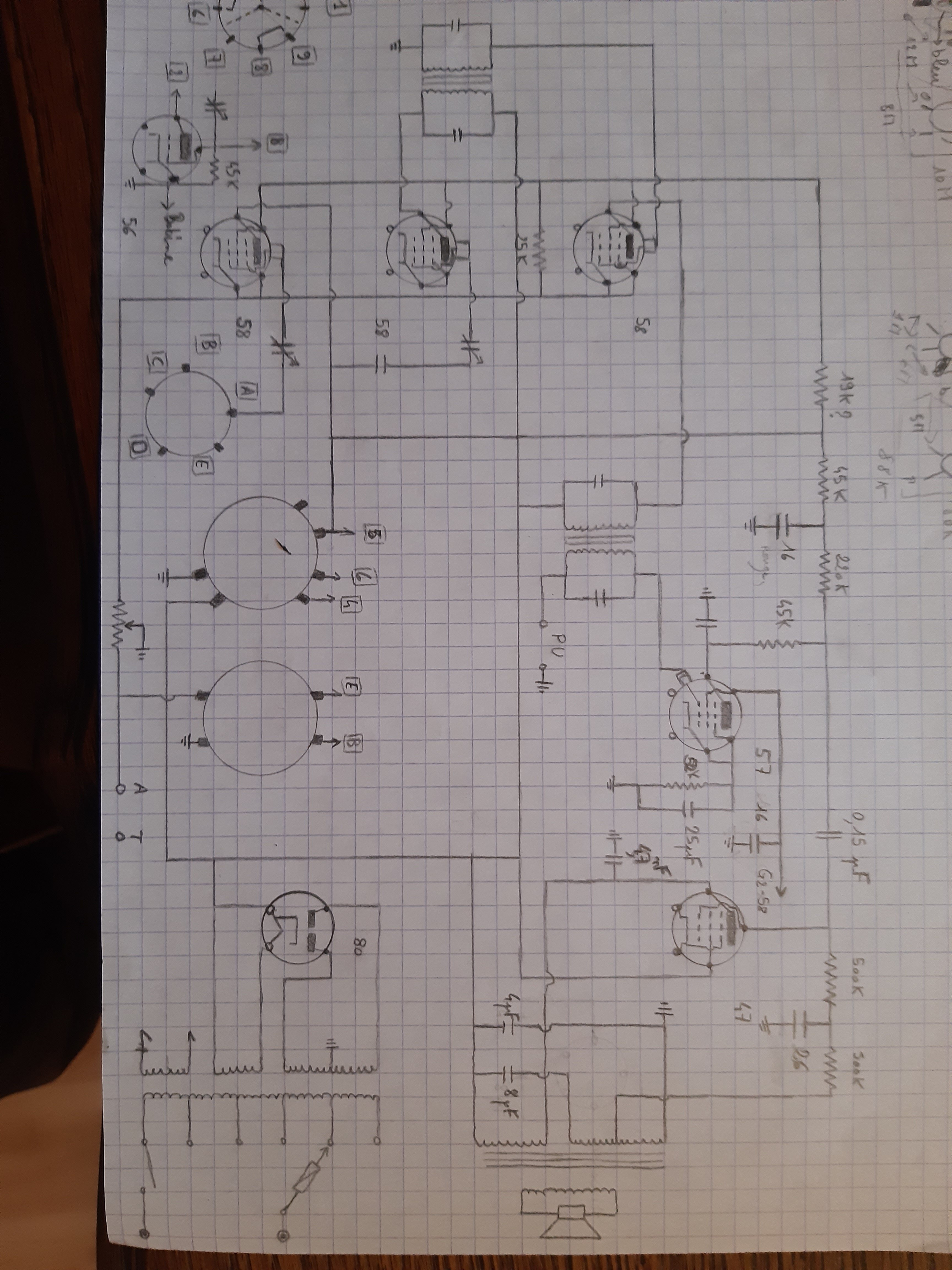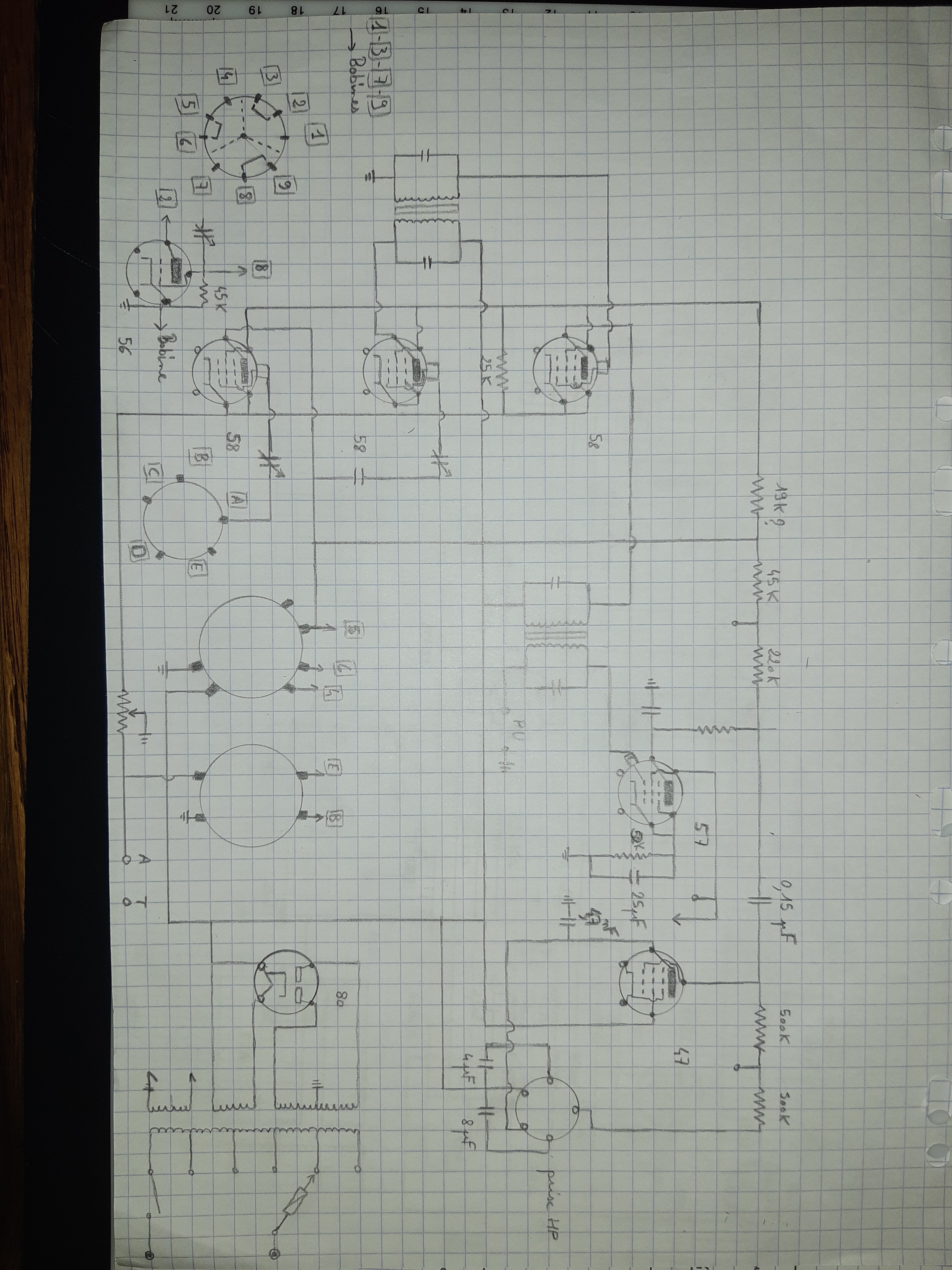 Je viens de vérifier sur le poste, et je confirme les infos du schéma. L’anode de la 57 est bien liée à la G1 de la 47 par le condensateur de 150nf, ça me paraît bon, qu’en pensez-vous?