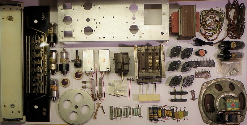 j’ai donc démonté et trié l’ensemble des pièces, et je me mets dans la peau d’un élève de Scuola Radio Elettra en 1958 ecco !