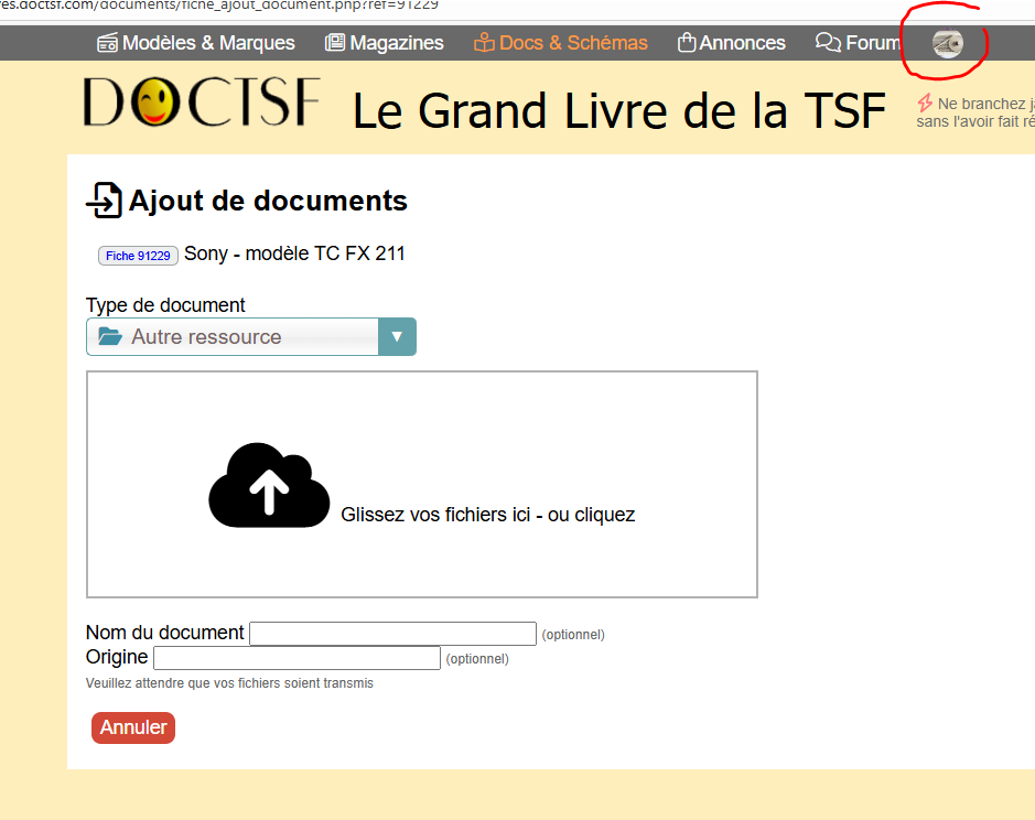 Je viens de me déconnecter de doctsf et du forum, je me suis reconnecté aux deux, j’ai bien accès à la fiche mais le fait de cliquer sur le lien " ajouter des documents en 3 clics " dans la fiche me renvoi sur le message d’erreur et me déconnecte de doctsf.