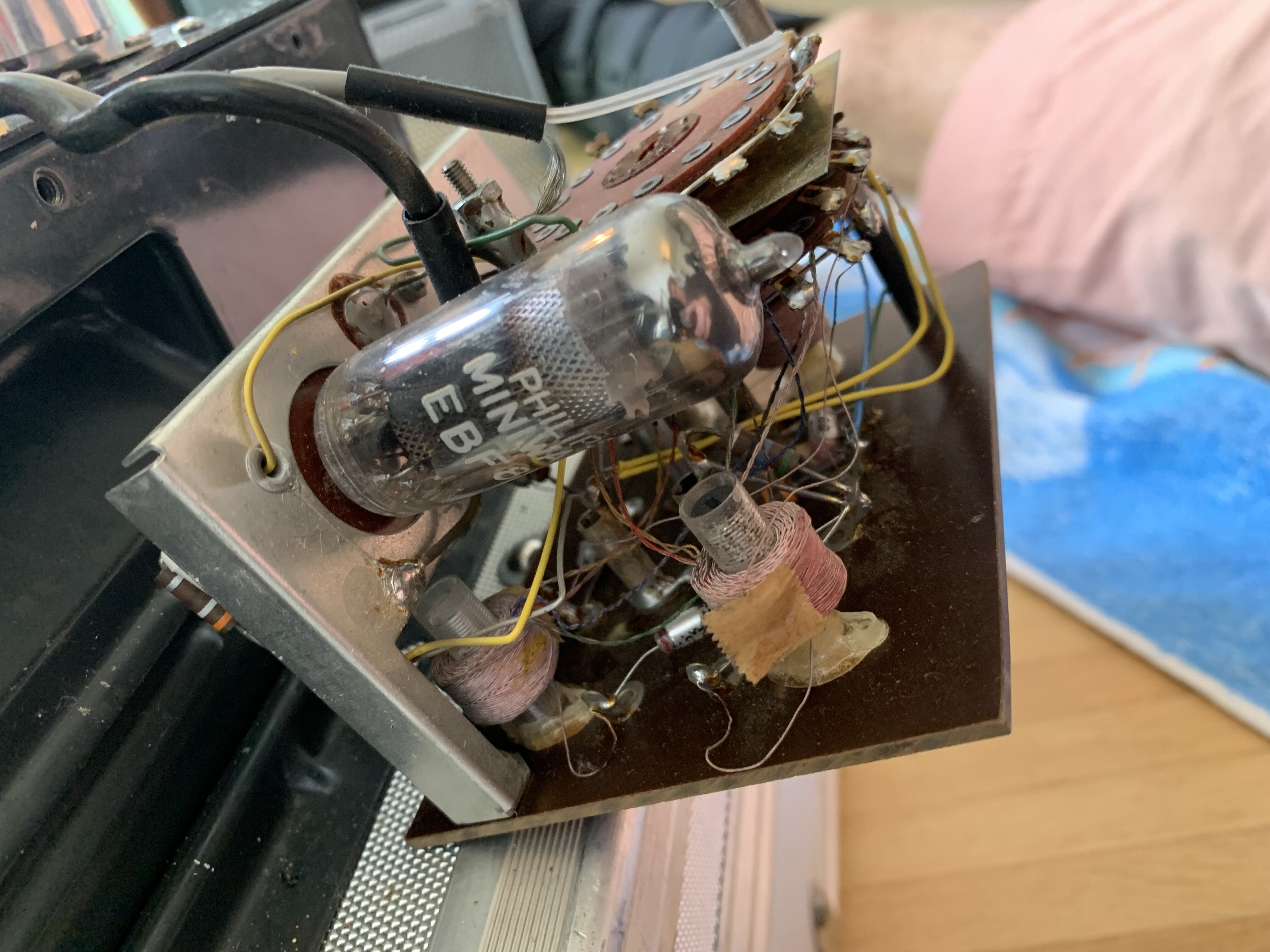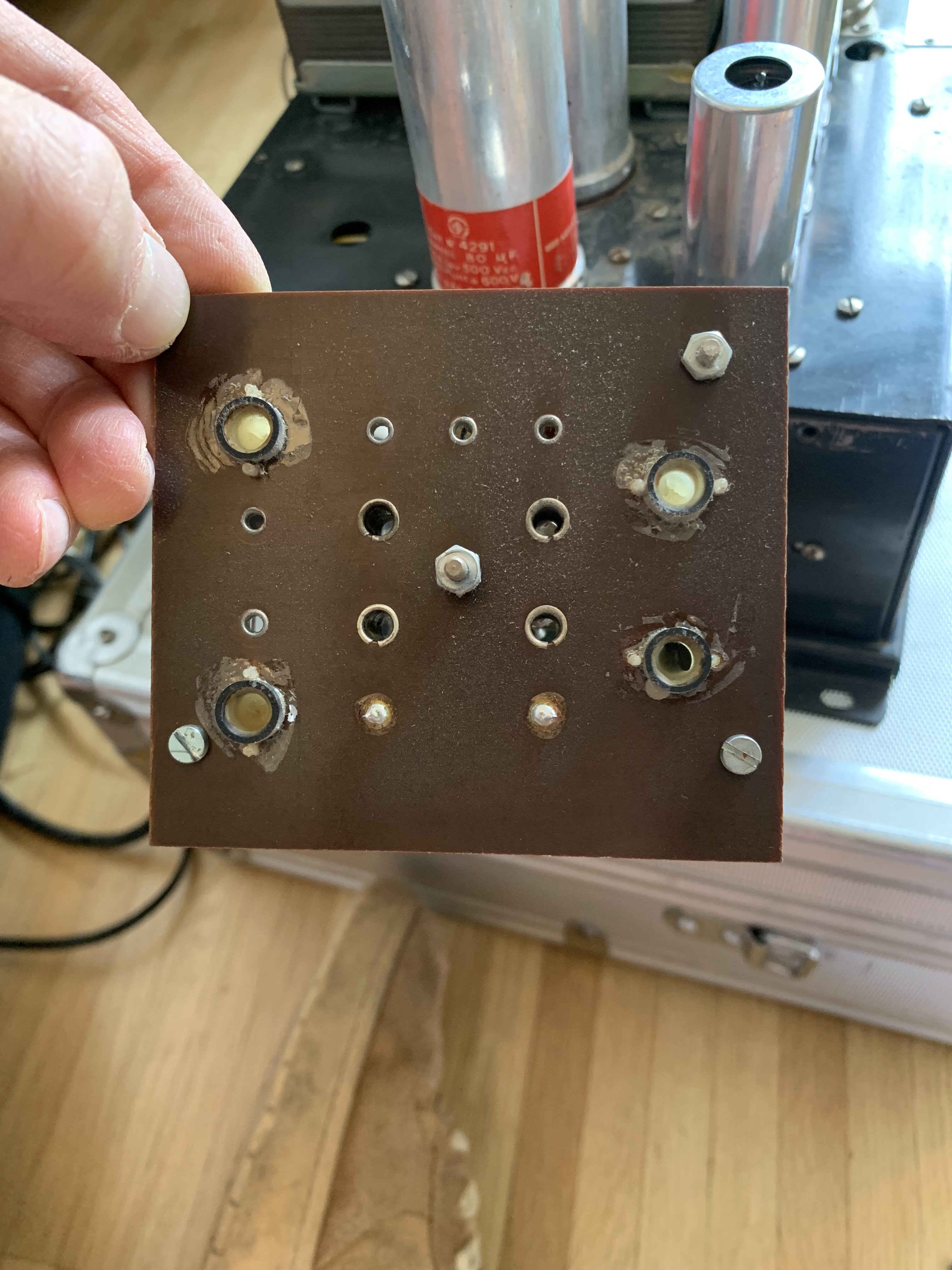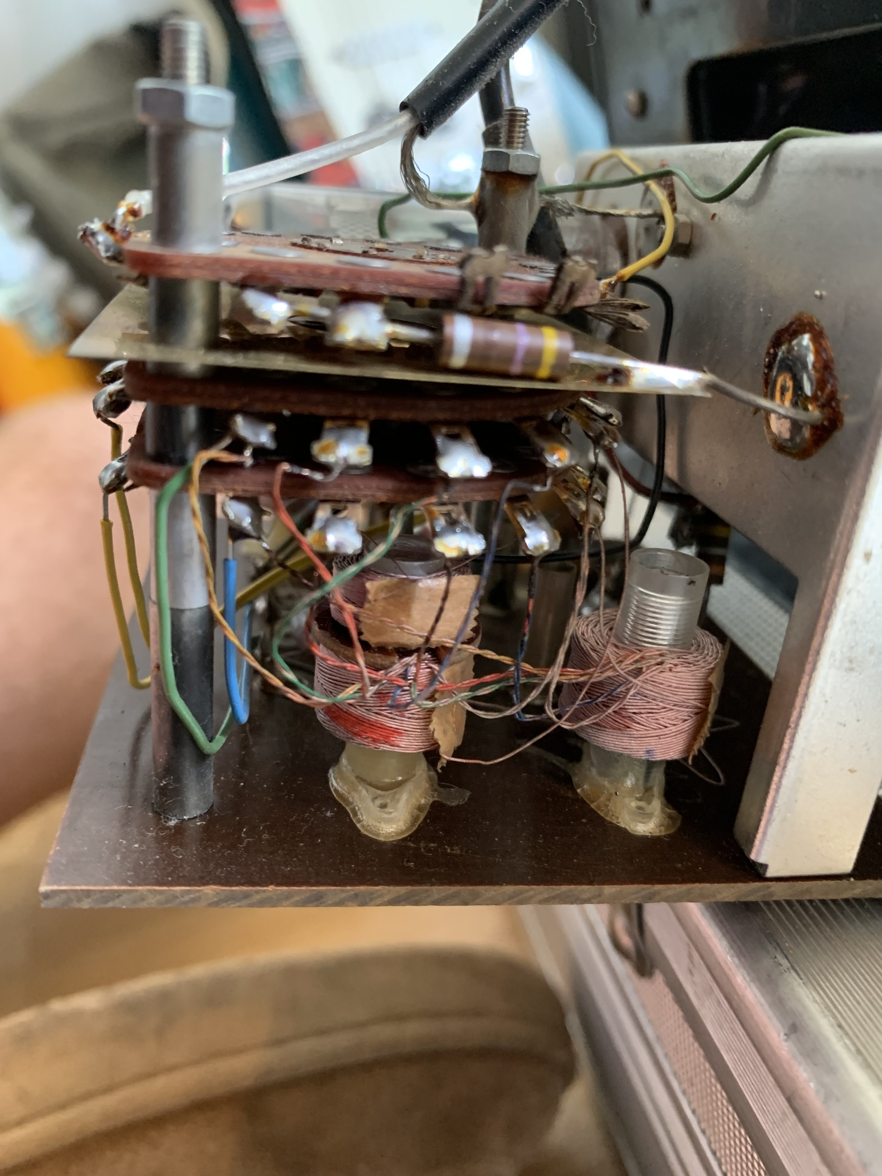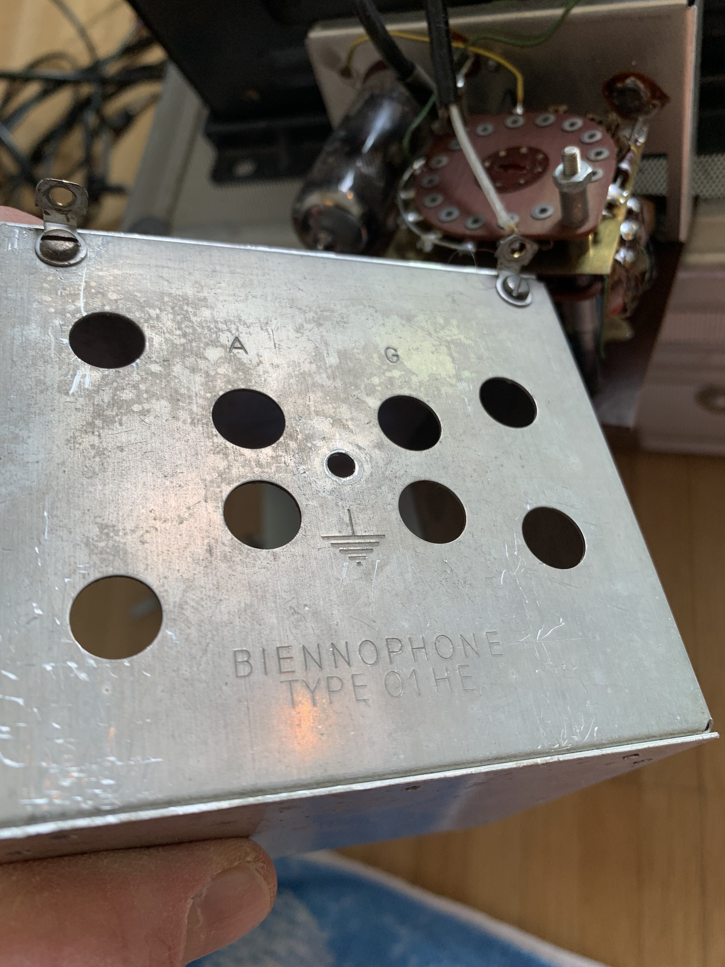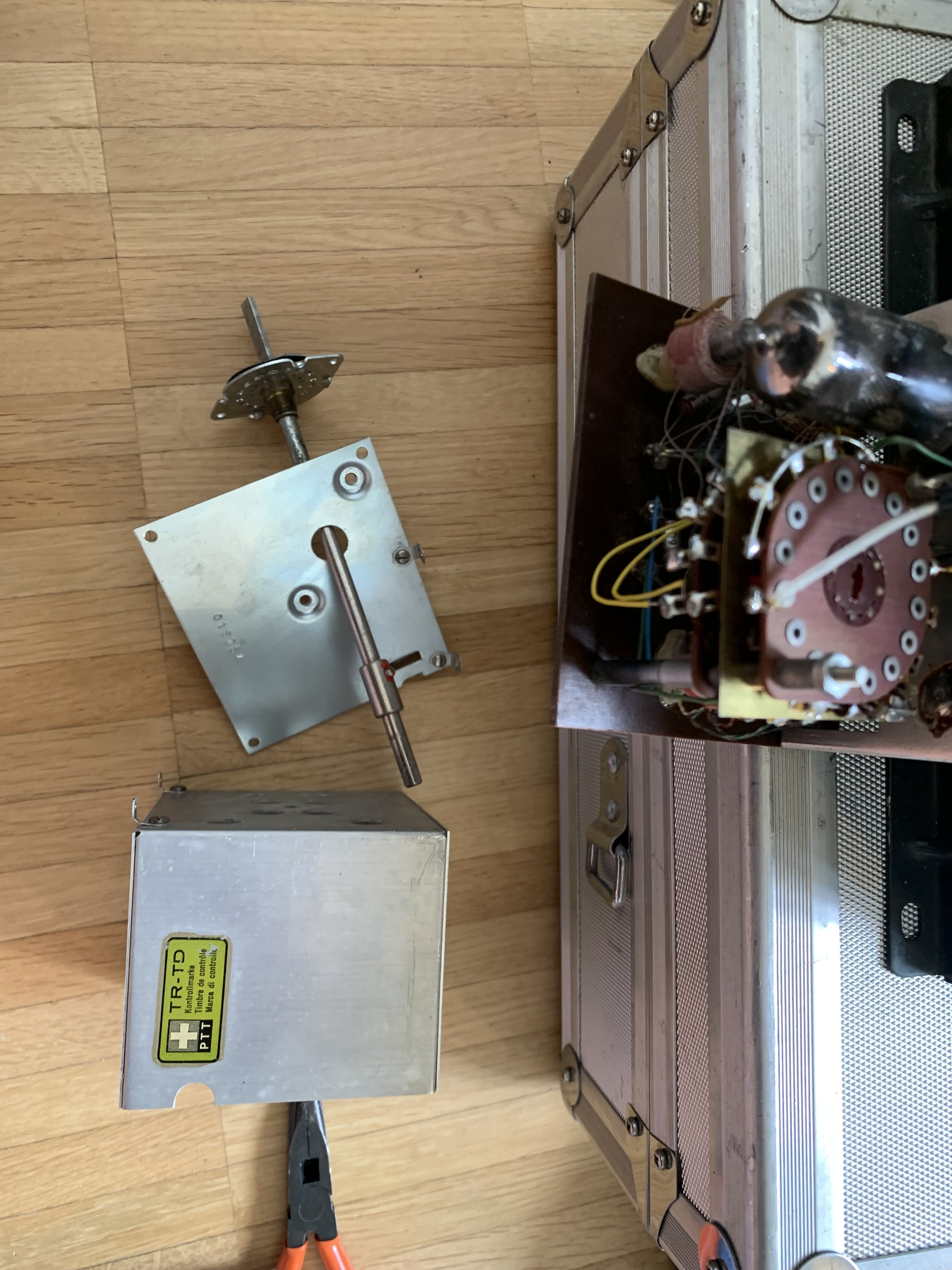 C’était branché/soudé/vissé sur un ampli Geloso G1.1070-A. En retrouvant des photos du même ampli sur internet, j’ai compris que cette pièce ne faisait pas partie de l’ampli d’origine.