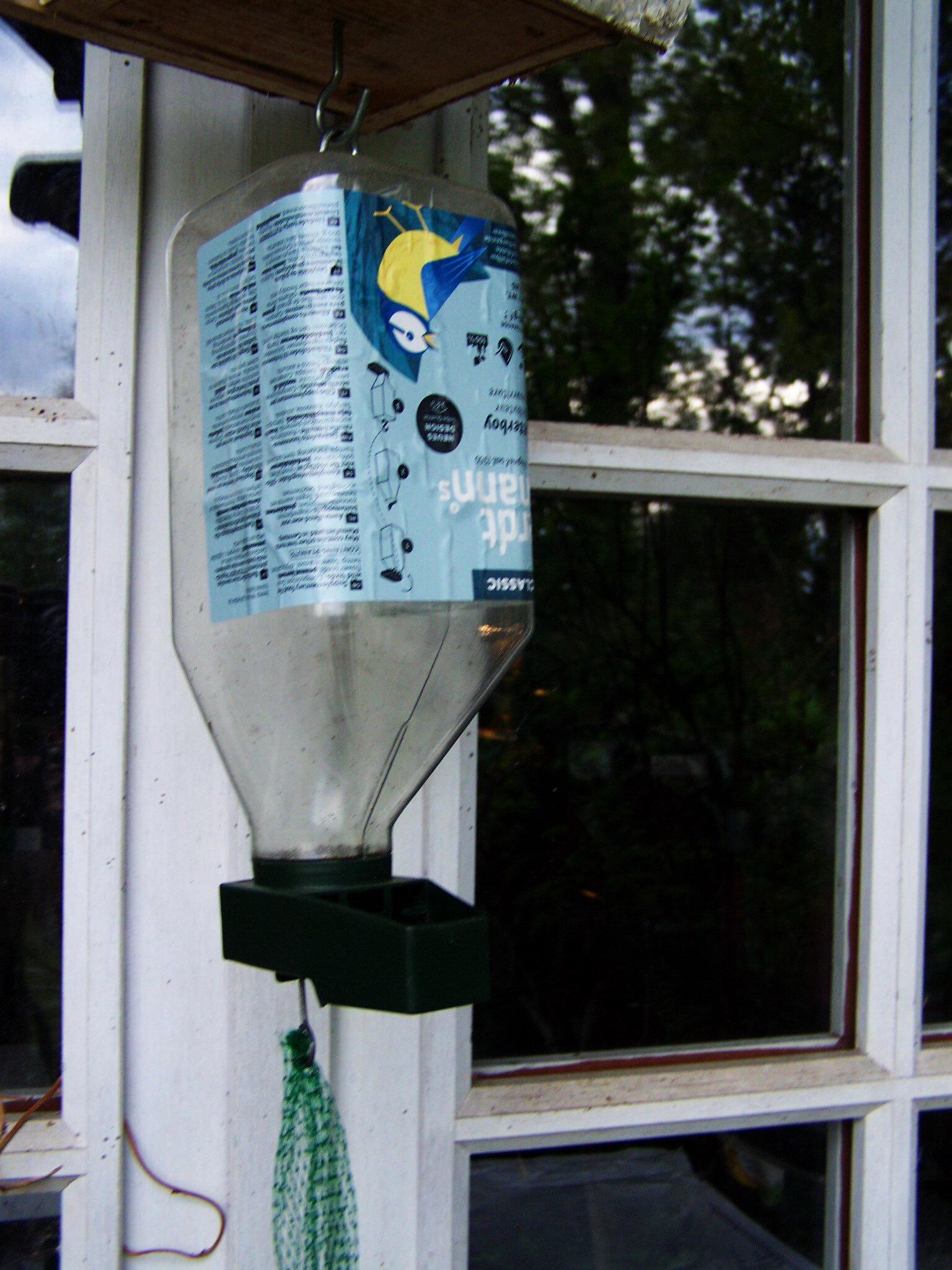 Et bien, pour l’hiver, un distributeur à graines destiné à nos amis les oiseaux.