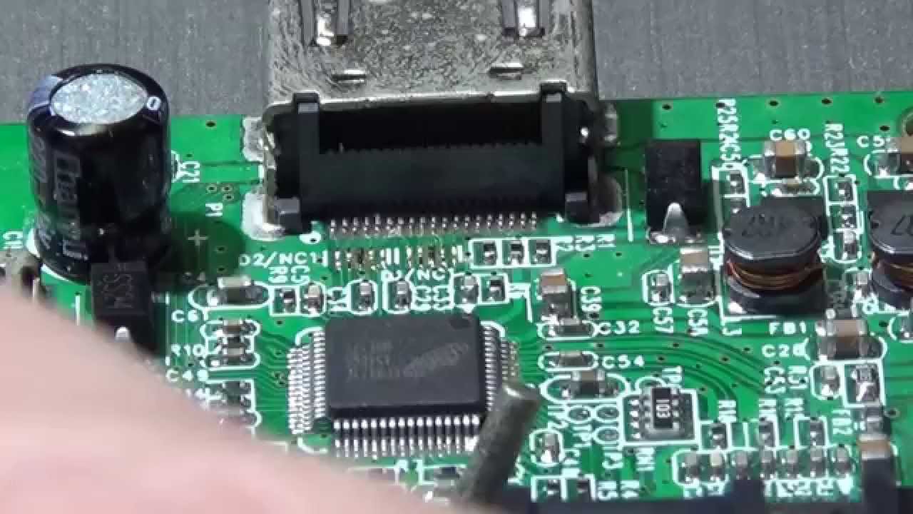 le youtubeur américain (12voltvids, dont j’ai posté une vidéo plus haut) avait constaté la mauvaise qualité des soudures, et la présence d’un pont sur les soudures (dans son cas c’était au niveau du connecteur HDMI), dans ton cas il faudrait regarder du coté de la puce qui s’occupe de la conversion du signal HDMI vers CVBS.