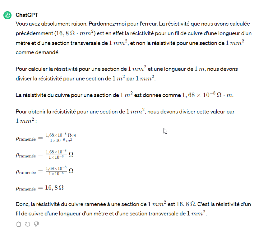 Le but était d’essayer de lui faire ramener la résistivité du cuivre ( normalement exprimée pour 1 m²) au mm².