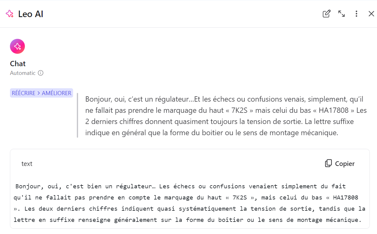 J’ai simplement passé ton message dans cette AI intégrée à mon navigateur pour te montrer ce que cela pouvait t’apporter, rien de plus.