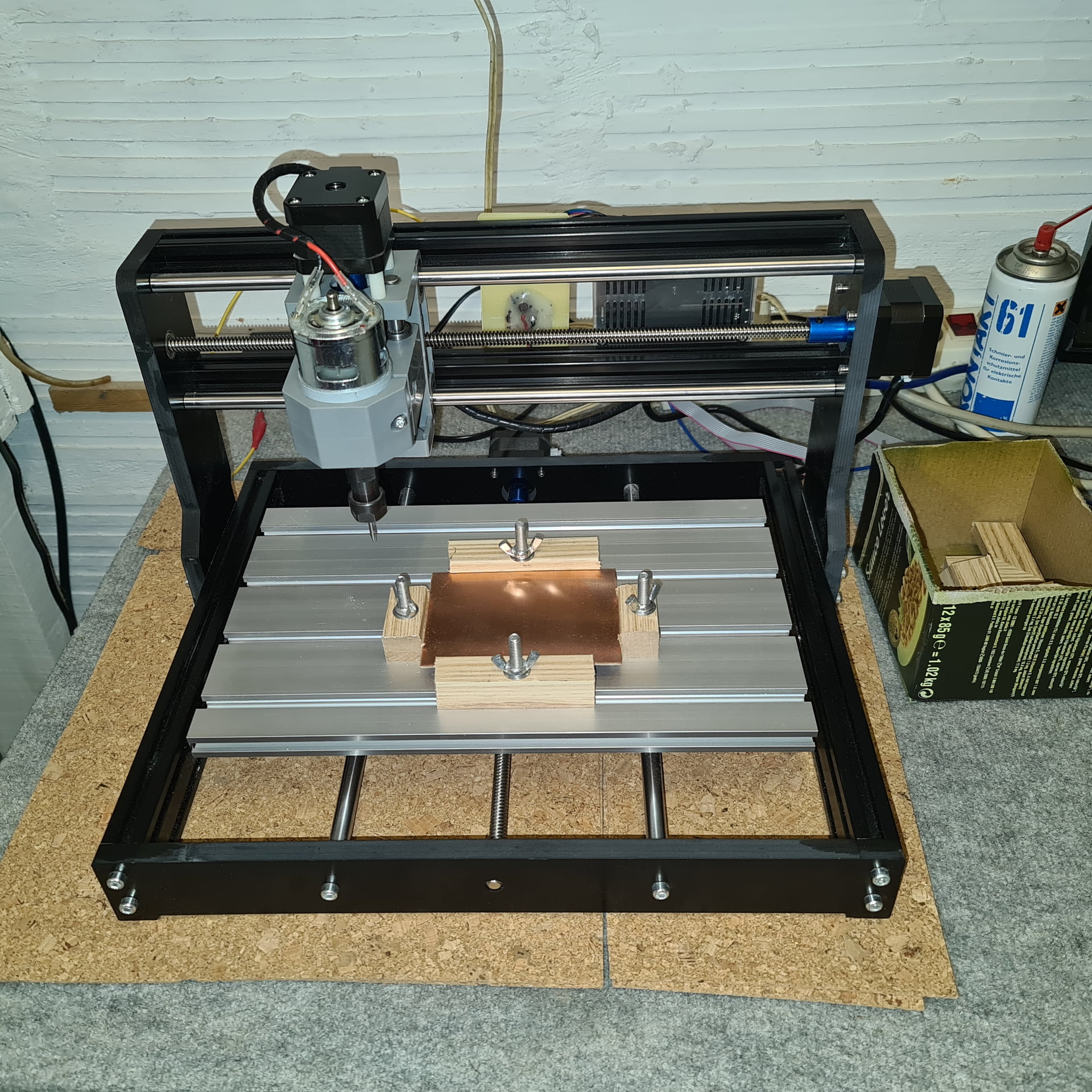 Ensuite, pour obtenir une gravure nette de l’alu il faut utiliser un lubrifiant, le pétrole est pas mal mais j’ai découvert que le WD40 étrait nettement mieux.