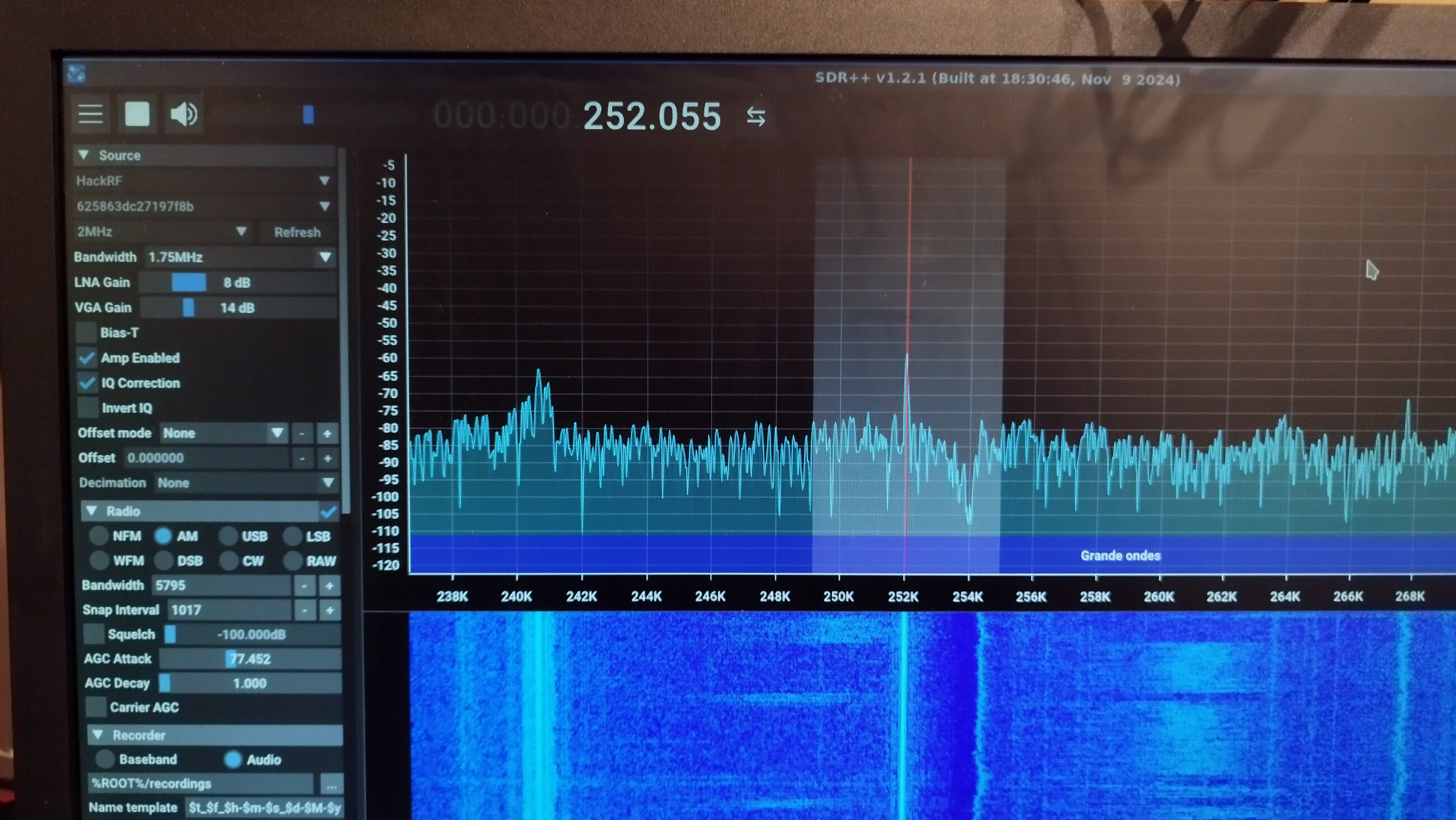 Le signal sur la whip est presque aussi bon que sur le cadre télécommandé du grenier, avec très peu de souffle pour ce dernier. (signal à 9+20)