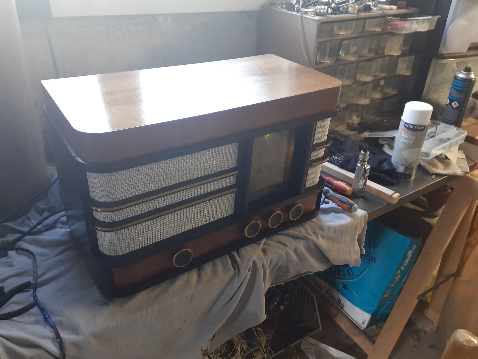 Mon mien, couleur de bois différente avec une petite anomalie sur le bouton central…
