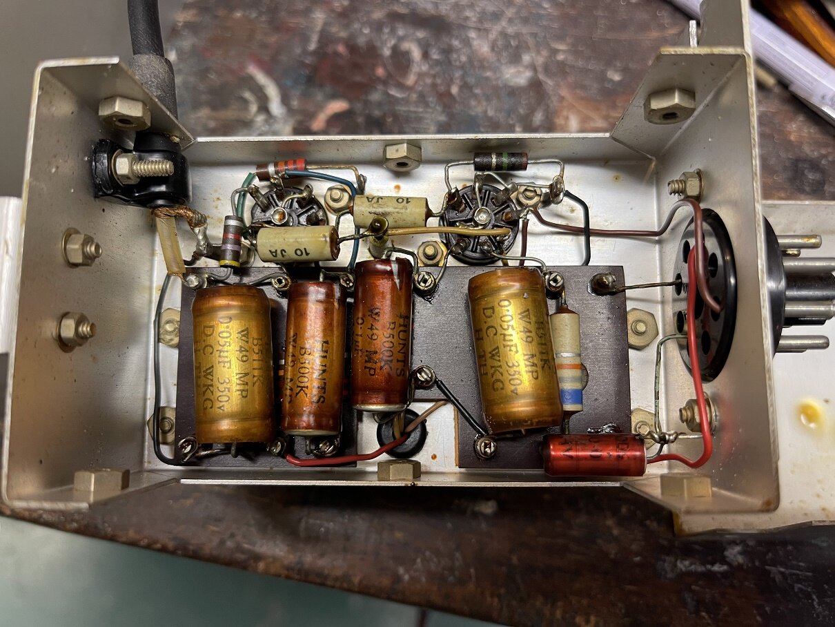 Il est en piteux état. Première réparation, la commande principale de tuning était gommée. Du « dégripoil » et c’est reparti. Inspection dessous, tout semble d’origine (photos dans la fiche).