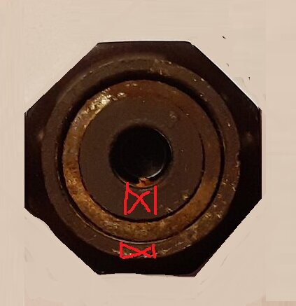 Sinon, je pensais aussi à percer deux petits trous sur la bague, lui insérer 2 clous fins et imprimer un rotation à cette bague pour lui casser la rouille de blocage. Normalement, il ne doit pas rester grand chose de l’ancienne vis de blocage, son bout doit être collé par fusion (lors du perçage) dans la bakélite. Si je sors cette bague, je verrais si c’est jouable ensuite.