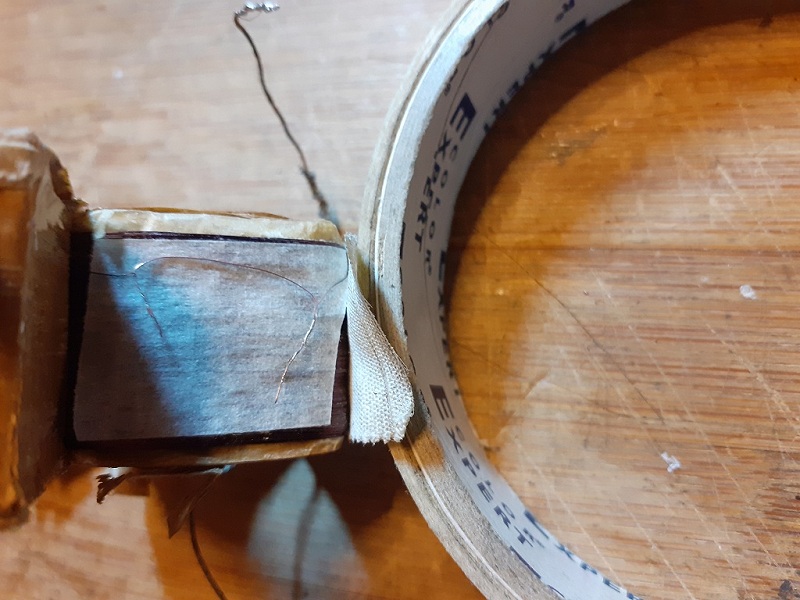 Test de continuité OK puis protection et isolement par un du ruban adhésif de pansement de même largeur que la bobine.