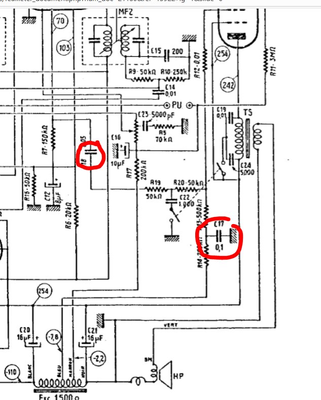 La valeur de C20 & C21 n’est que de 8 μF sur mon poste pas 16 comme sur le schéma
