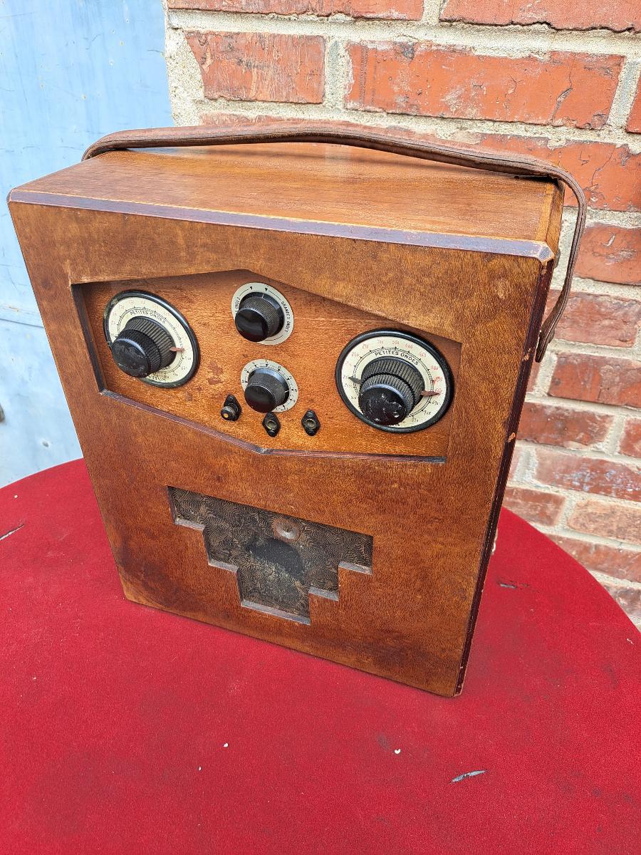 Un modèle compact portable avec réception sur cadre incorporé et diffuseur électromagnétique dans le même boitier, qui permet également de loger un accumulateur de 4 volts pour le chauffage des lampes er une pile haute tension.