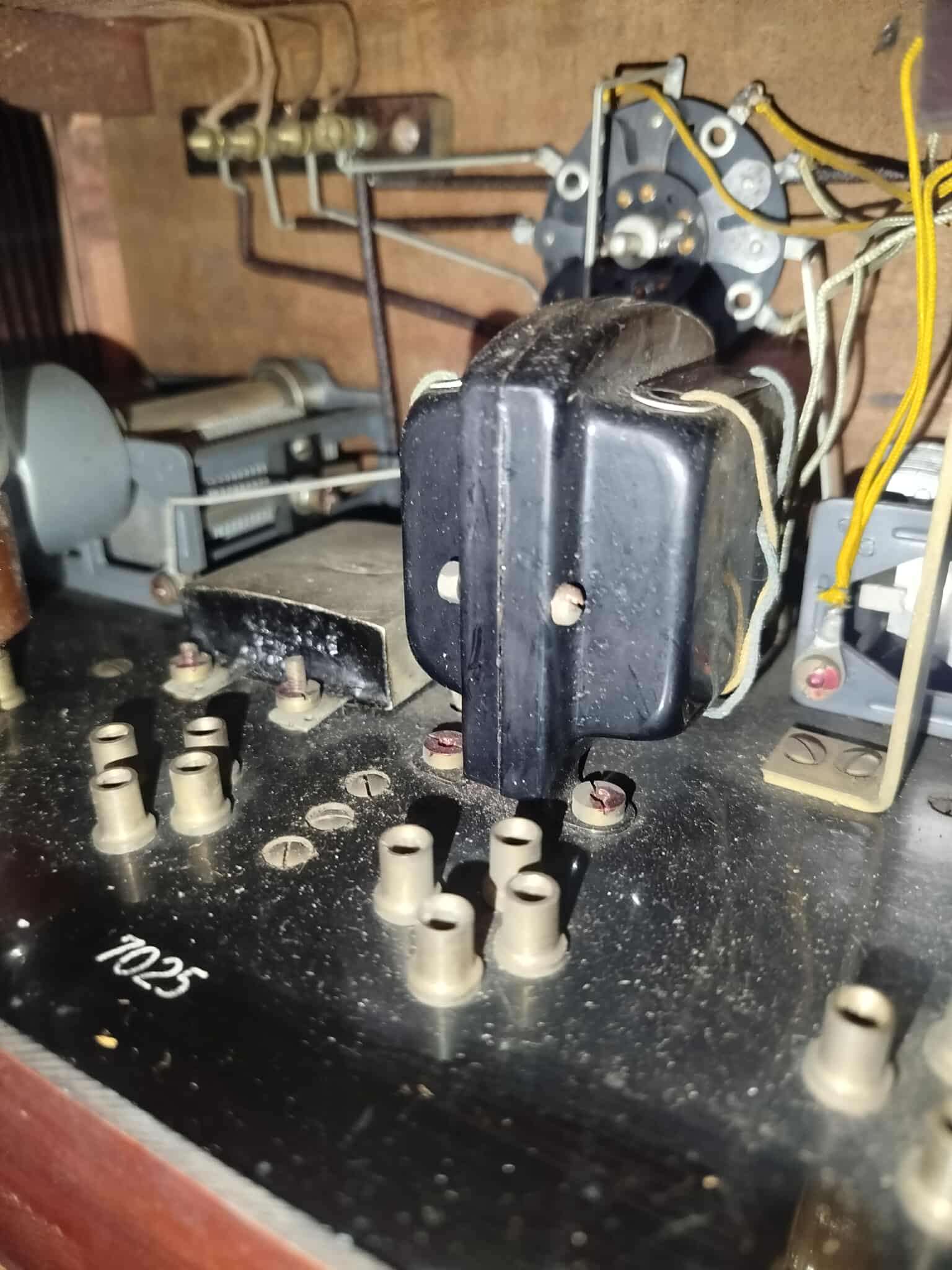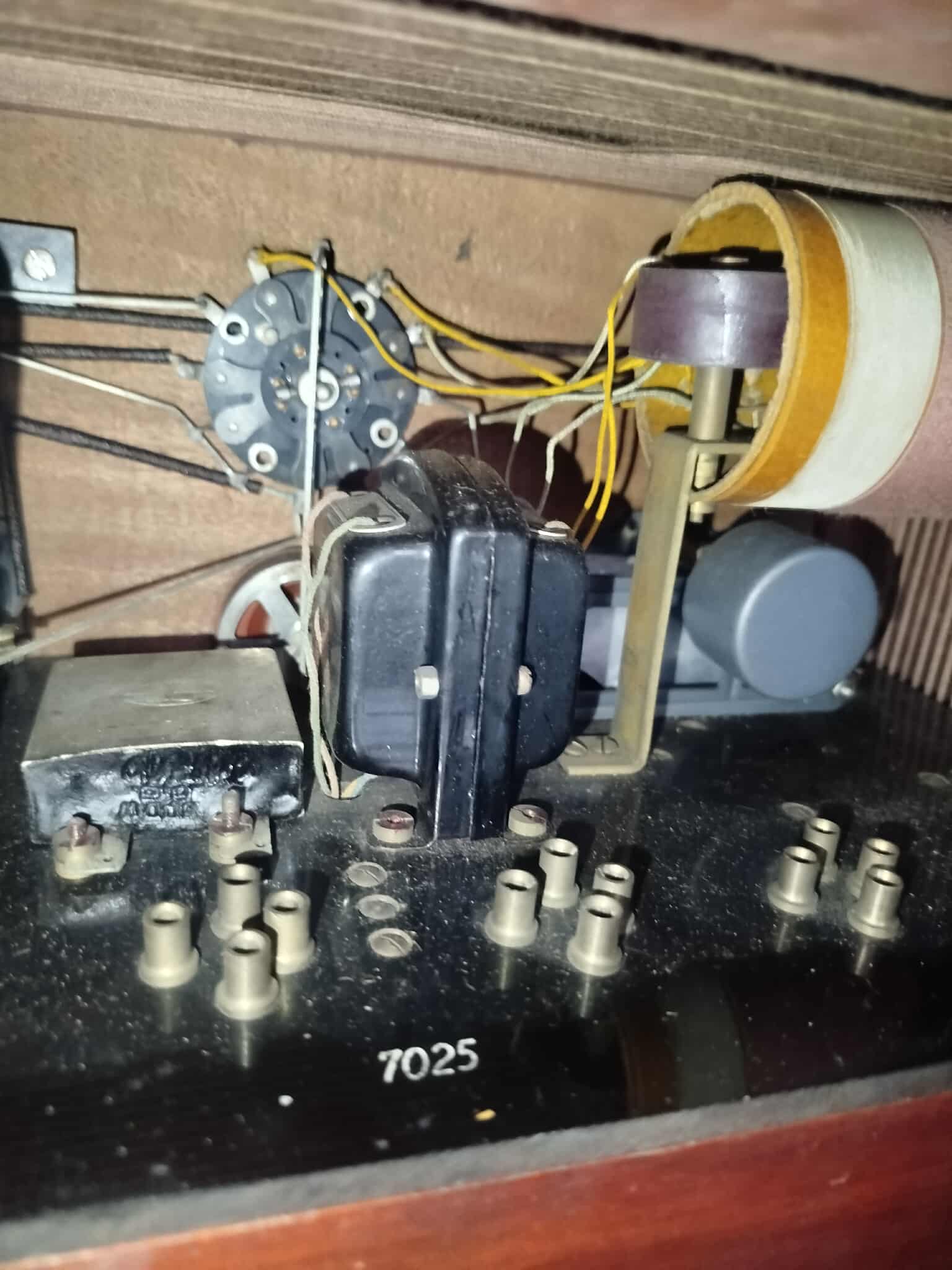 Je n’ai pas réussi à le faire et j’ai dû essayer la radio Vitus. Et voilà, ça marche, mais le haut-parleur interne est faible ; j’en ai donc utilisé un autre pour la démonstration. Sinon, les transformateurs de couplage sont probablement défectueux, et quelqu’un a donc remplacé les condensateurs. Mais ce qui m’a le plus plu, c’est que les tubes sont tous à 100 %.