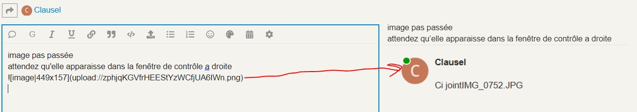 - cliquer glisser un Jpeg ou png dans la fenêtre message