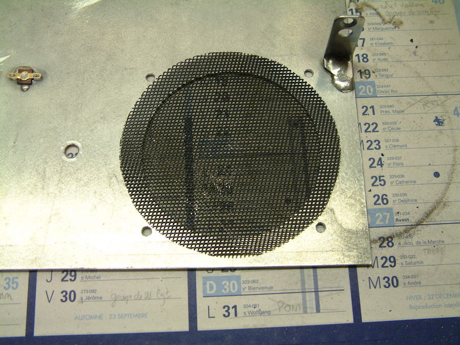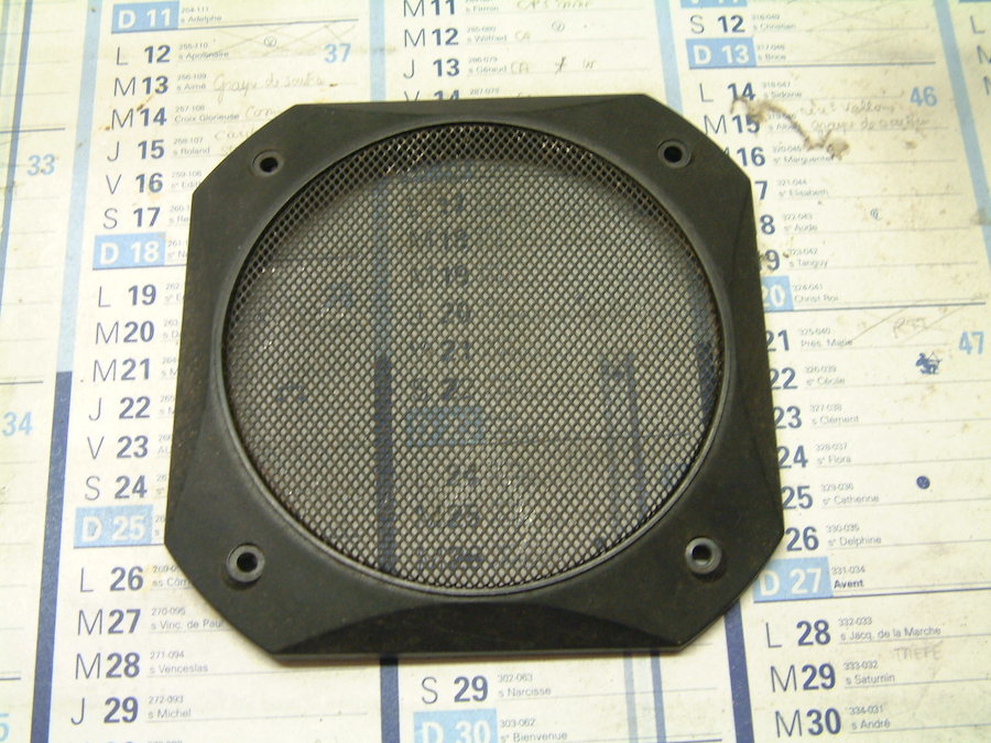 Pour protéger la membrane du HP je voulais dans un premier temps, poser un bout de tissus et finalement j’ai trouvé un cache HP de voiture avec une grille métallique noire.