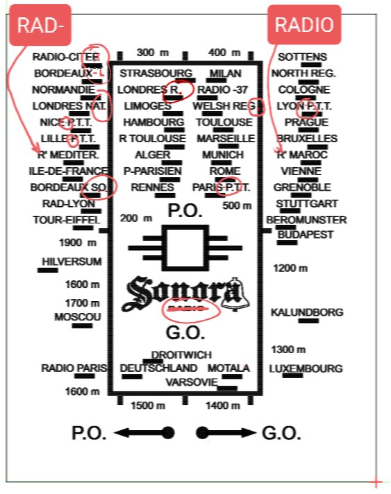 Voici entouré de rouge les différences que j’ai pu observer avec l’original, il s’agit beaucoup de la ponctuation, des points et des tirets à ajouter, RADIO-CITÉ à corriger ainsi que RADIO-MAROC , RAD-MEDITER. et BORDEAUX - L à compléter :