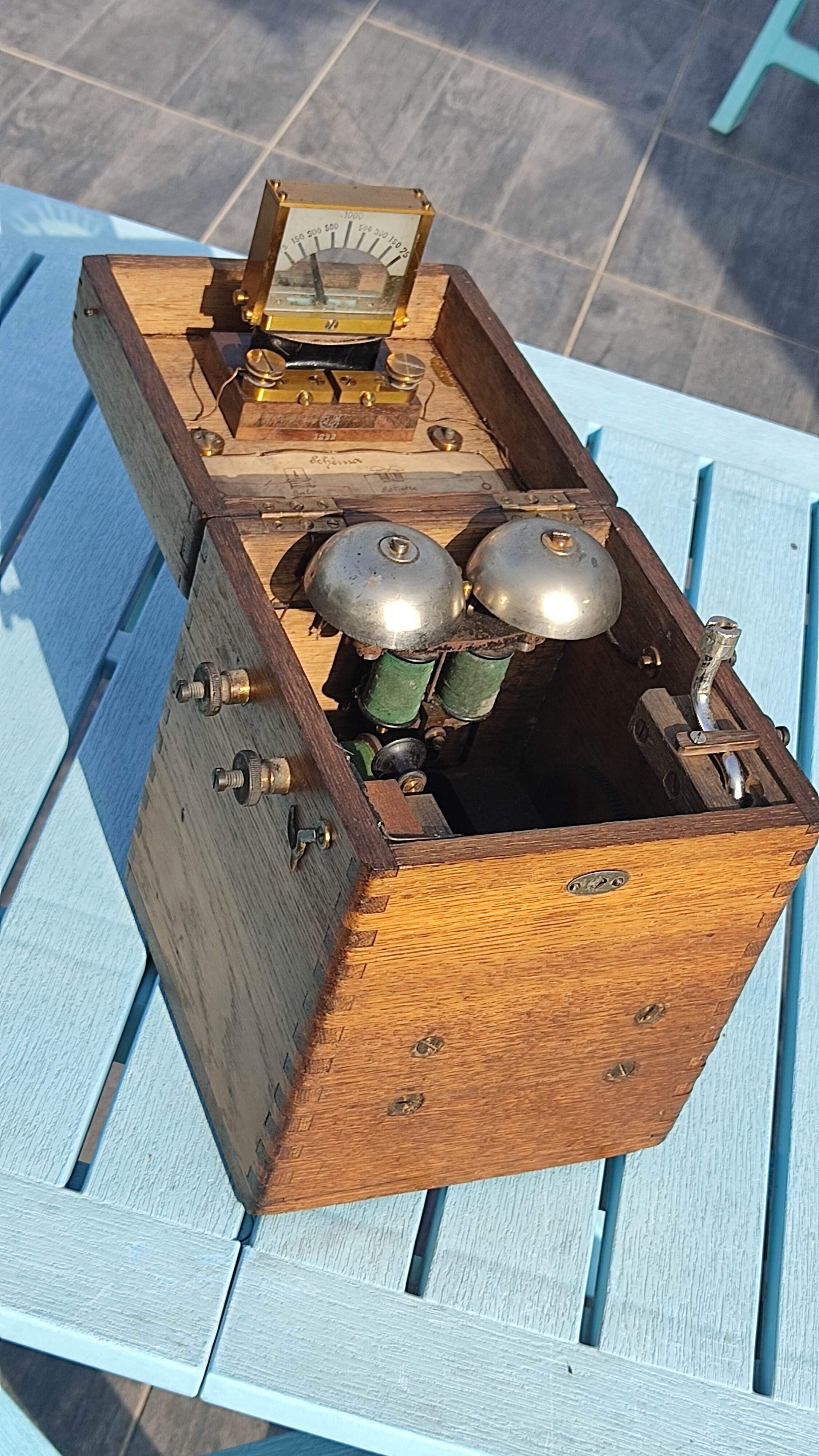 En y regardant de plus près l’appareil de l’OM iltalien, il semble que d’après le schéma sur son appareil la sonnette ne figure pas et les vis de connection à droite non plus. Cela voudrait dire que son appareil est complet mais que sa fonction diffère un peu.