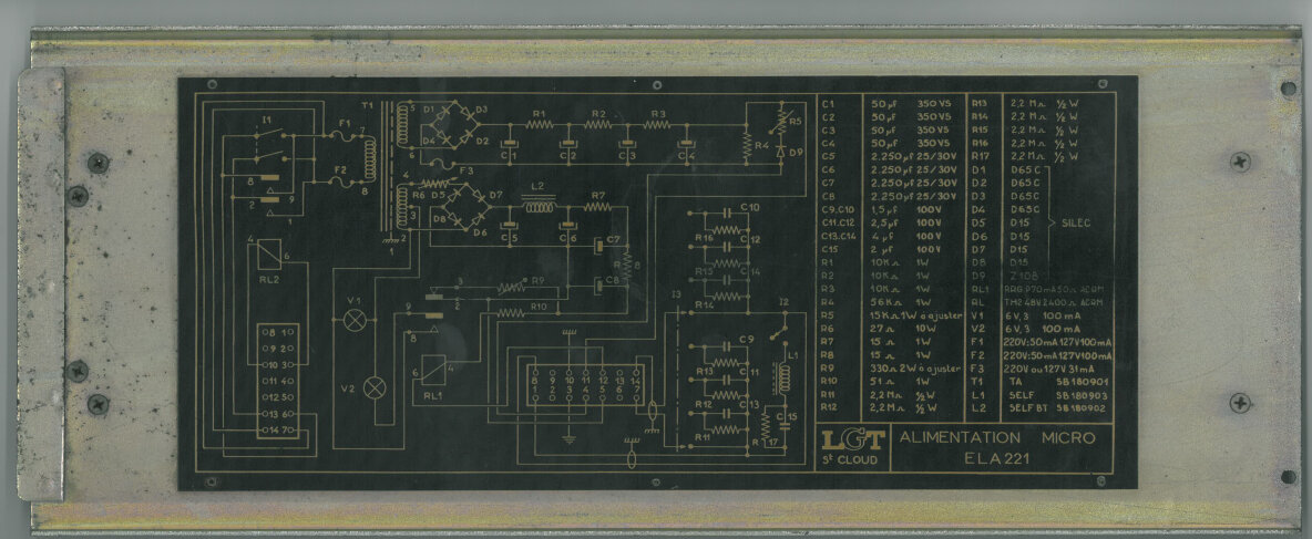 Possibilité d’échange éventuel avec un rack gris RTF alimentation microphone micro ELA 221 ( SE5 A52 B ) Marché 11505 / 62 - LGT St CLOUD AL180 ( en l’état, sans les capots du dessus et du dessous, non testé ) :