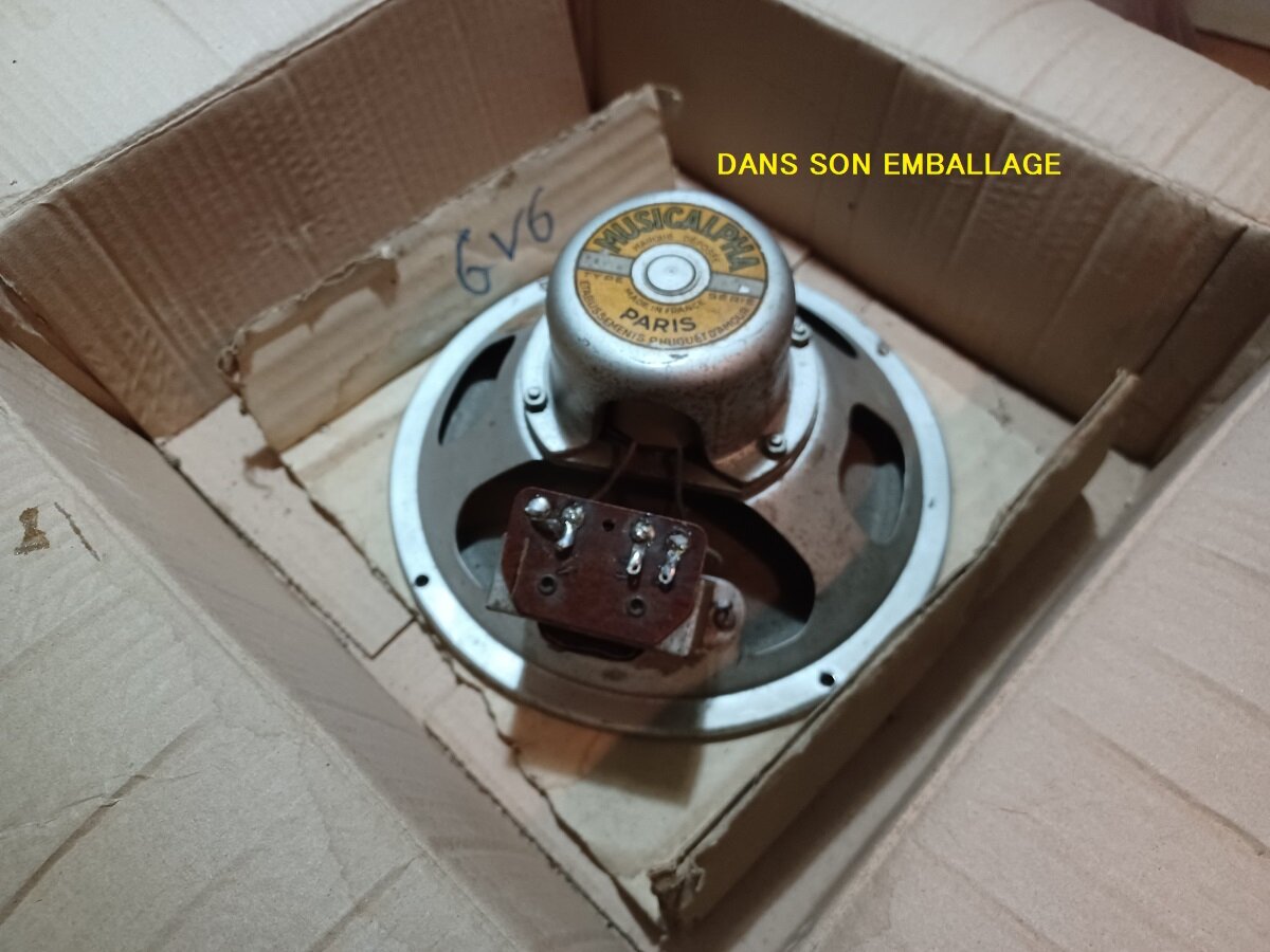 Bonjour , je cherche un Haut Parleur pour un Peugeot P540 ,le diamètre est de 20cm , résistance de la bobine d’excitation (lissage) 1800 Ohms , tranfo d’impédance : primaire 536 Ohms ,secondaire 1 Ohm , bobine cône 3.3 Ohms (donc je pense 4 ohms) .la lampe finale est une 6V6 : Ra 8500 Ohms ce qui me donne un rapport de 46 , en mettant du 5v sur le secondaire je trouve 202v au primaire soit un rapport de 40 je ne sait pas si la valeur est critique ? Voila quelqu’un pourra t’il me dépanner ,ci joint une photo de la culasse de celui qui est dessus.je pense que du moment ou c’est un 4 Ohms je pourrais y adapter mon transfo d’impédence non ? .merci d’avance