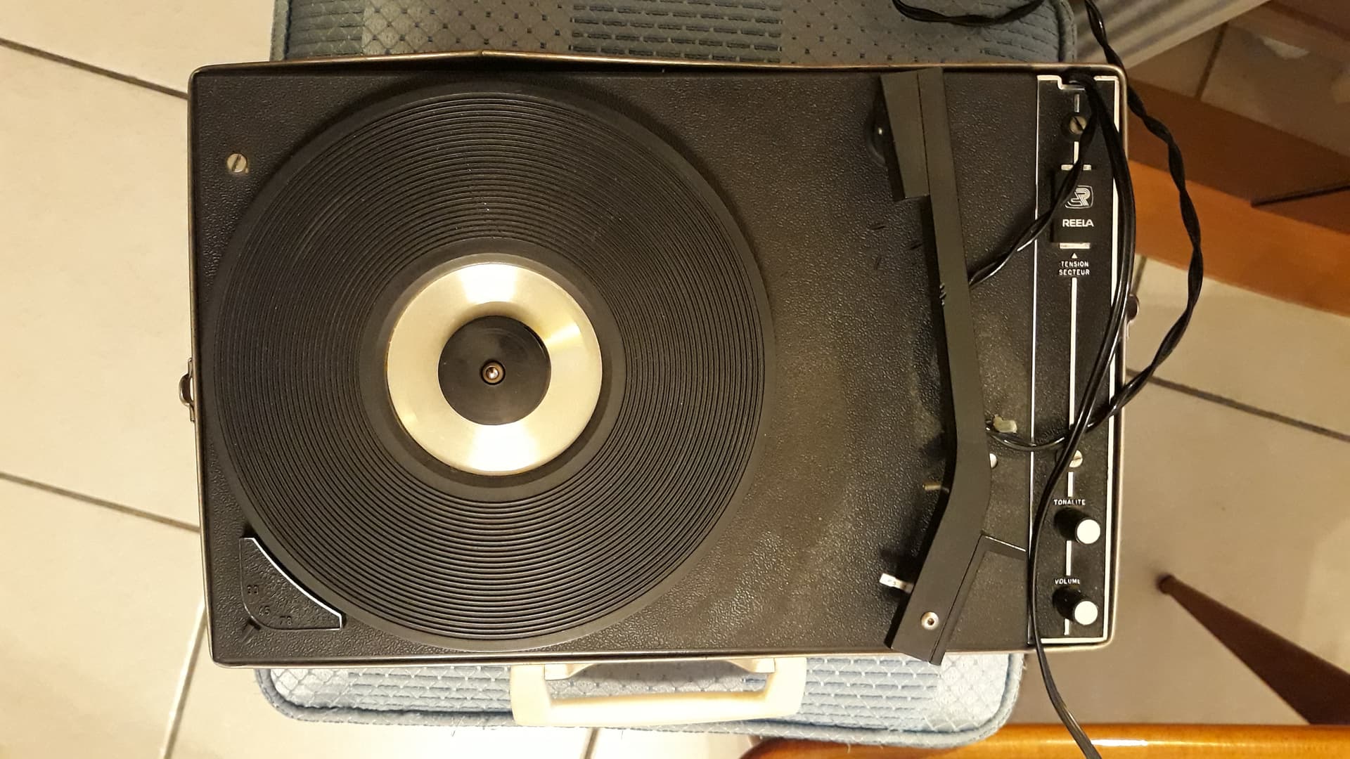Bref : on a retrouvé avec une de mes soeurs une valise tourne disques de marque Reela ; nous voulions l’essayer avec des vieux 45 tours