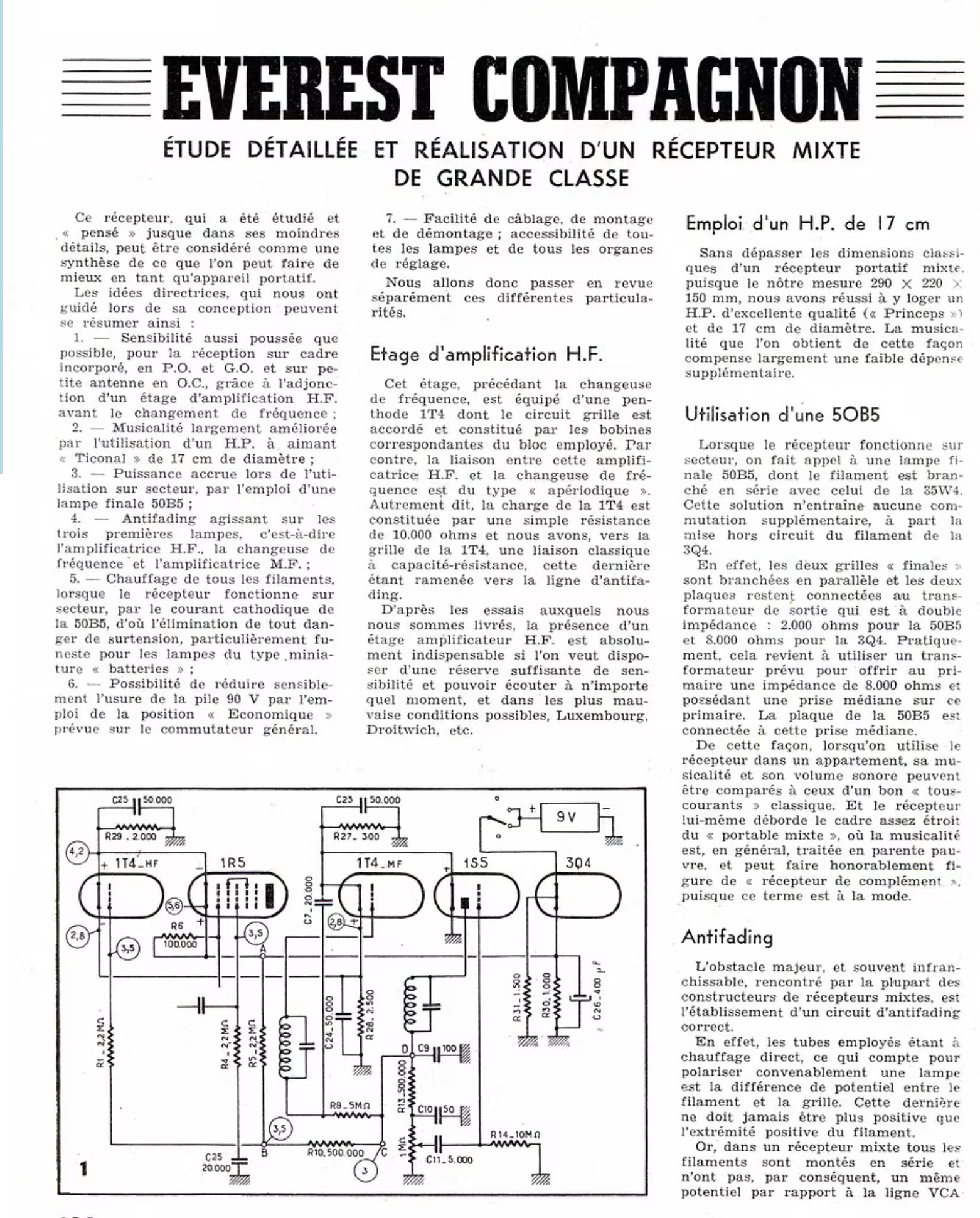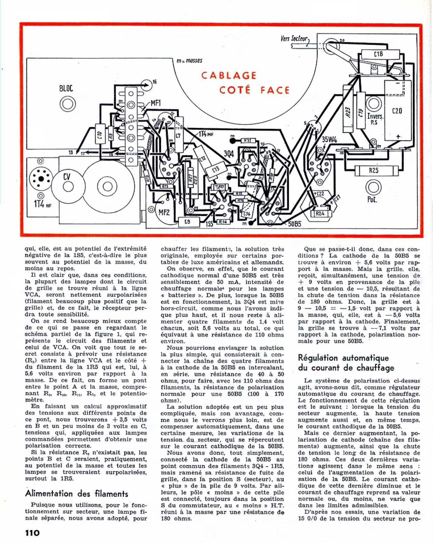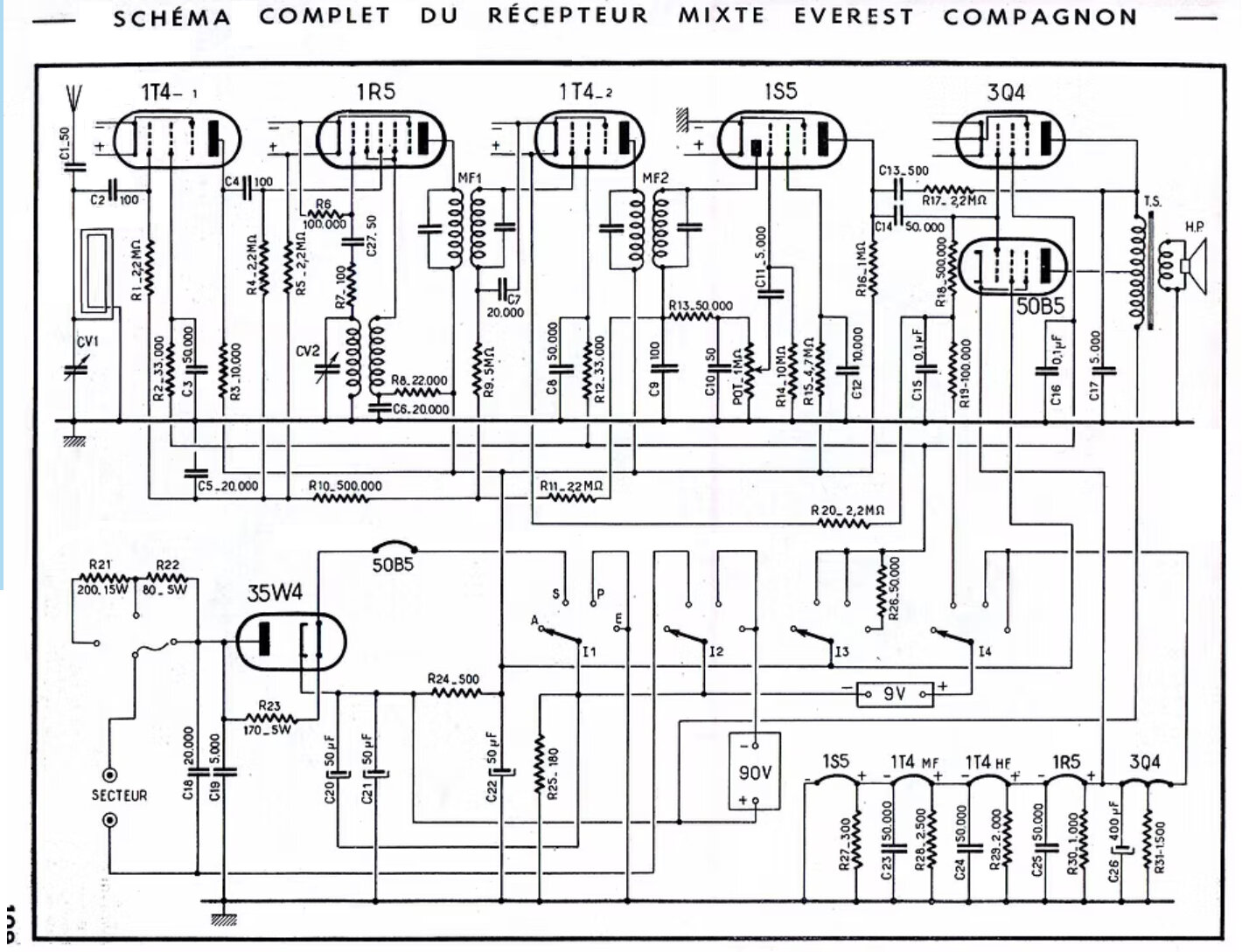 je pense que le fonctionnement sur piles se fait sut 5 lampes sans utiliser la 35W4 et la 50B5 qui consomment beaucoup trop pour des piles