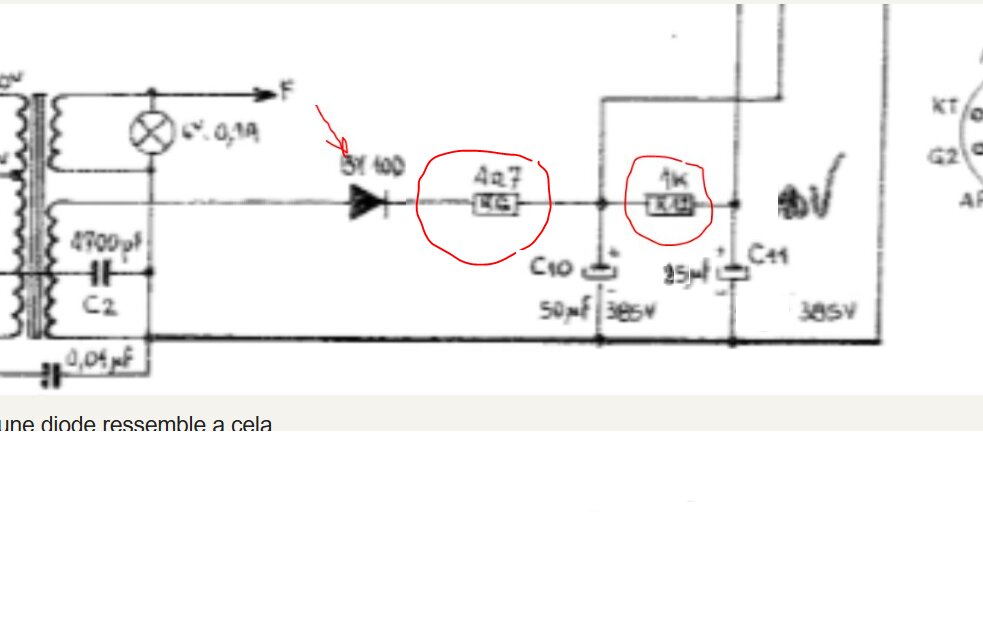 par contre je pense que le condensateur tubulaire 50+25+25 est defaillant et a causé la destruction de la resistance