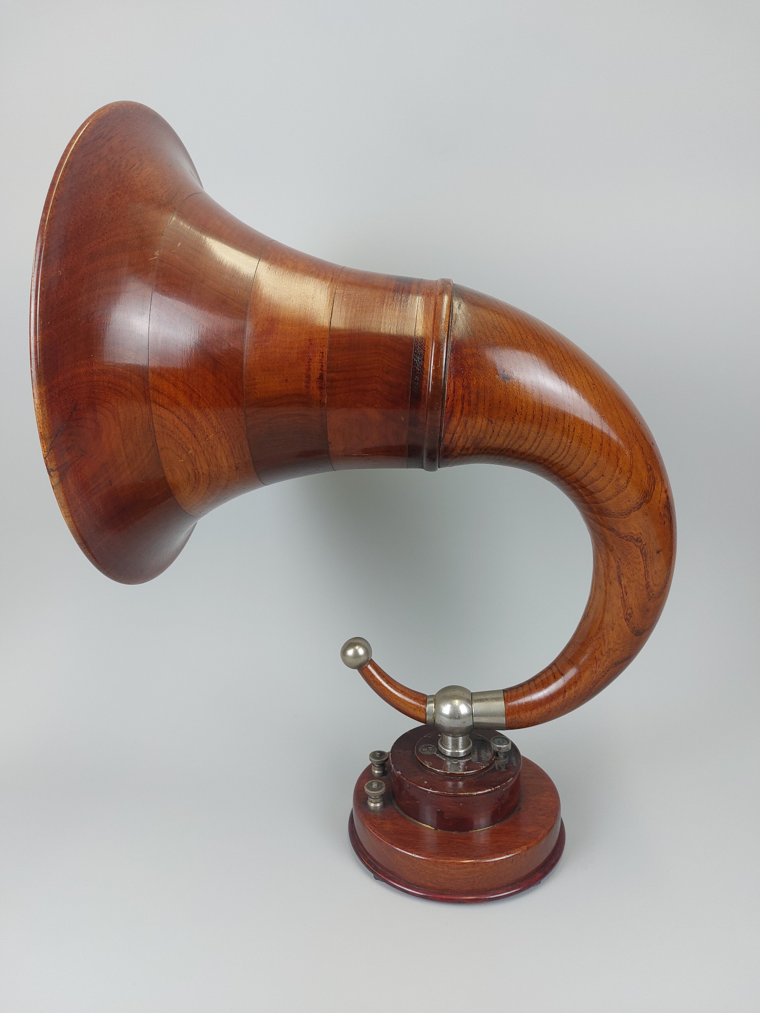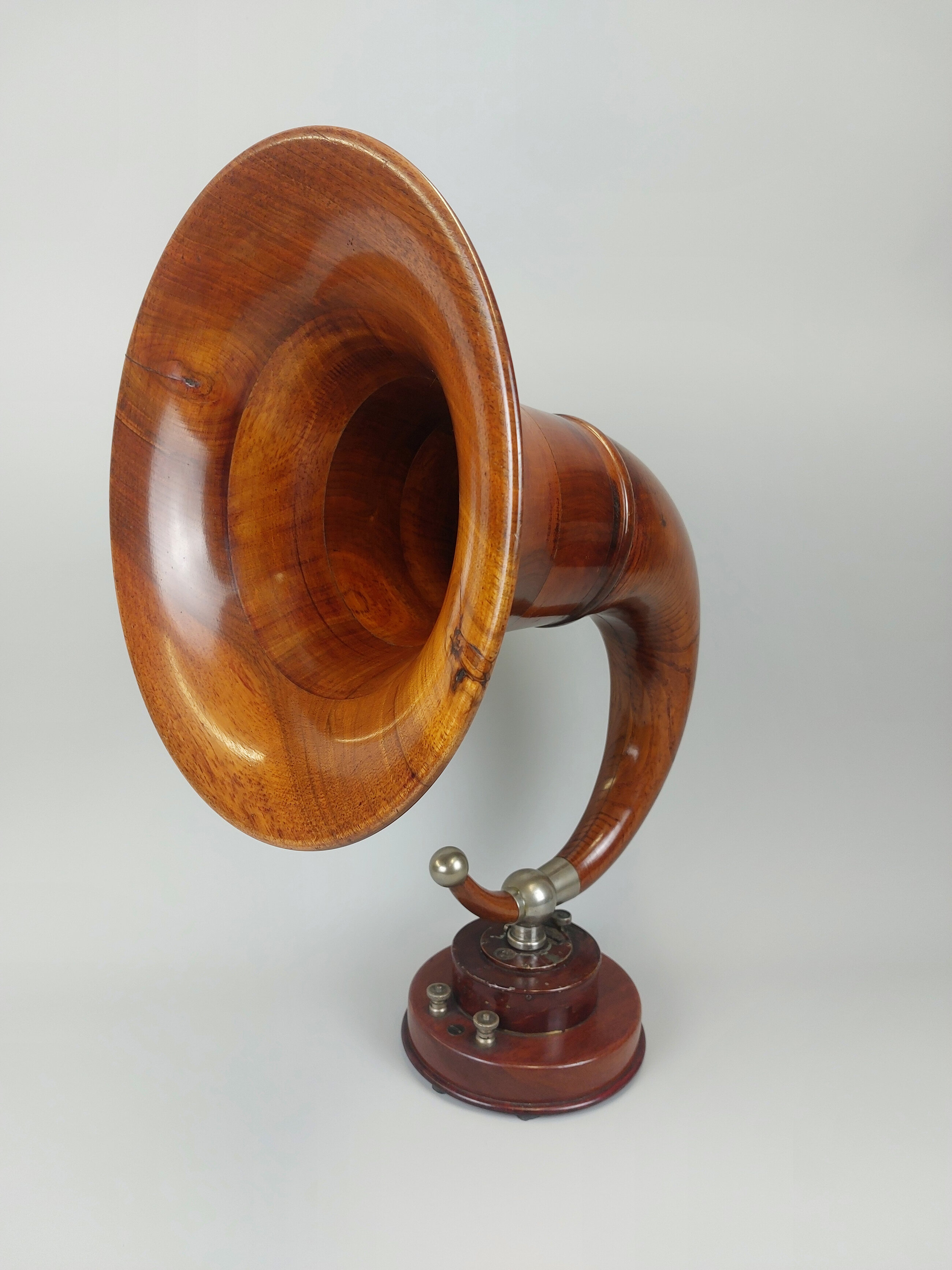 En 1927 il est aussi fait mention d’un modèle grand luxe avec conque polie et pavillon acajou massif.