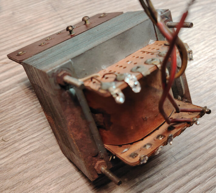 2 enroulements 6,3 V : 0,4 Ohm pour l’enroulement qui chauffe l’EZ80, 0,28 pour celui qui chauffe les autres tubes et éclairage.