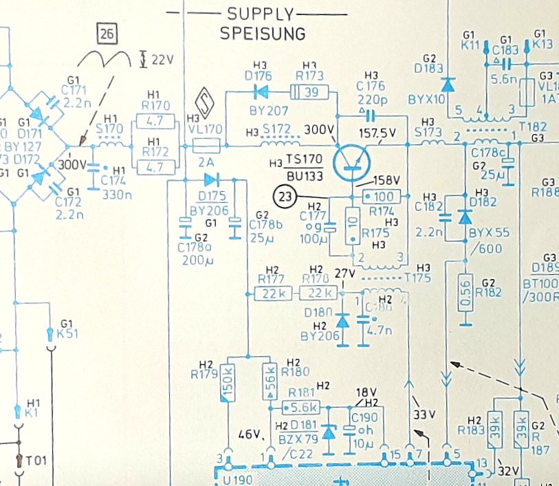 Malheureusement personne n’a numérisé le schéma du TVC7 au complet avec les codes de pièces détachées, je ne sais pas si @kiki37 possède la liste des pièces avec code pour cette alimentation TVC7 et peut nous le confirmer ?