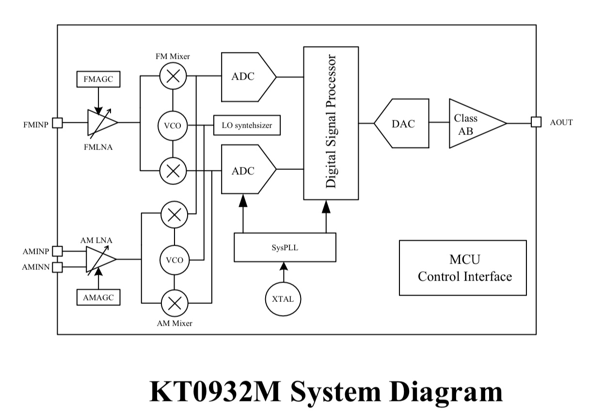 une question technique à propos du fonctionnement du circuit intégré radio KT0932M (synoptique interne en PJ).