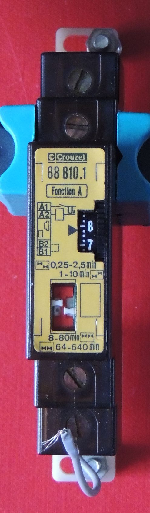 apres cette tempo(peut etre reglable) le relais en serie sur A2 bascule et s’arrete avec l’ouverture de l’inter