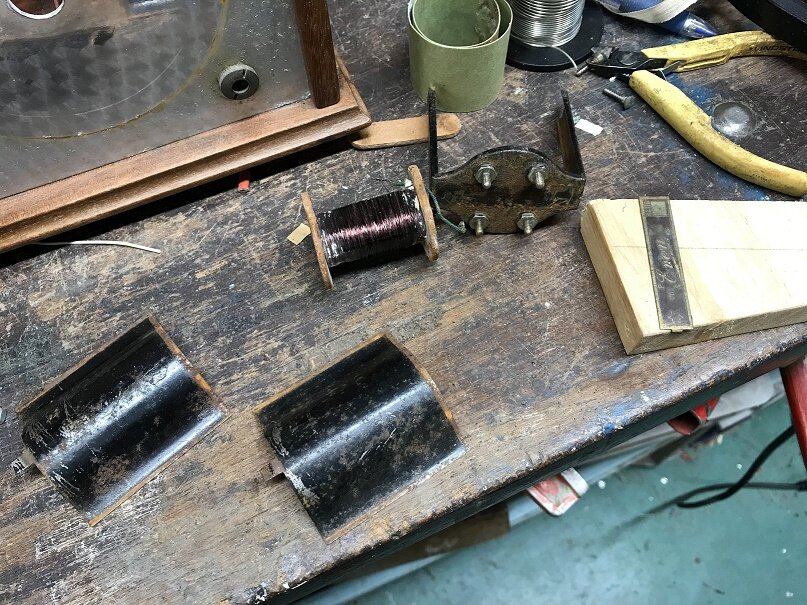 Presque tous les axes laiton des bobines cassés nets aussi sur un Monopole M367, le problème est qu’il faut s’occuper de suite du changement de l’axe, avec du laiton, car le bobinage très fin se coupe très vite. J’ai mis de l’inox non magnétique, car impossible de mettre la main sur du laiton M3… Encore un truc qui a disparu des rayons.