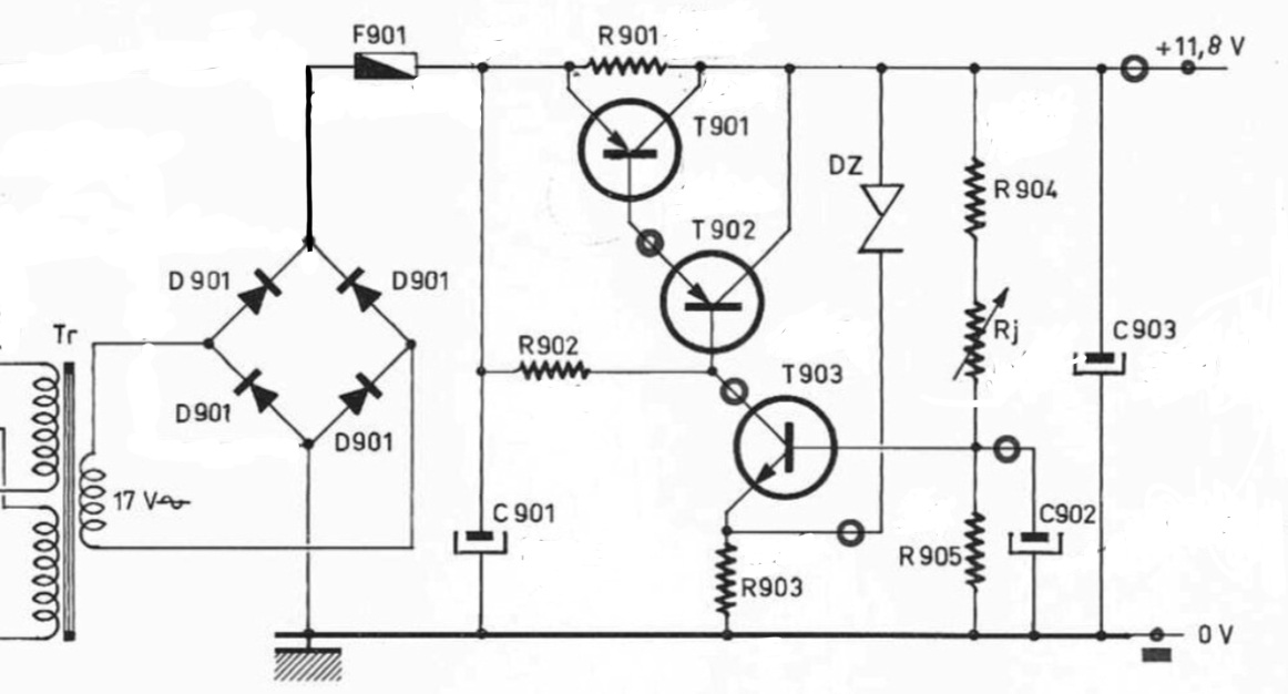 Je pense démonter la platine alimentation pour refaire le schéma car il me semble qu’il correspond plus au schéma de principe si après (voir fusible800 mA) sauf en ce qui concerne la valeur des diodes et la stabilisation ou régulation.