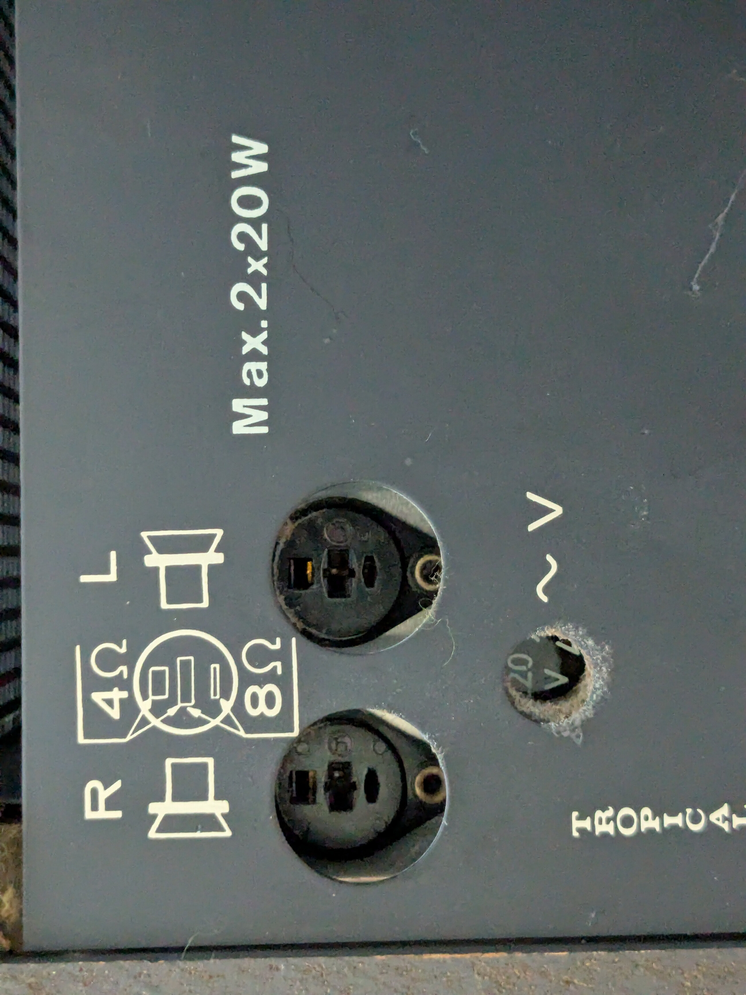 A l’intérieur, entre les connexions 4 et 8 ohm, il y avait une résistance bobinée de 4 ohm.
