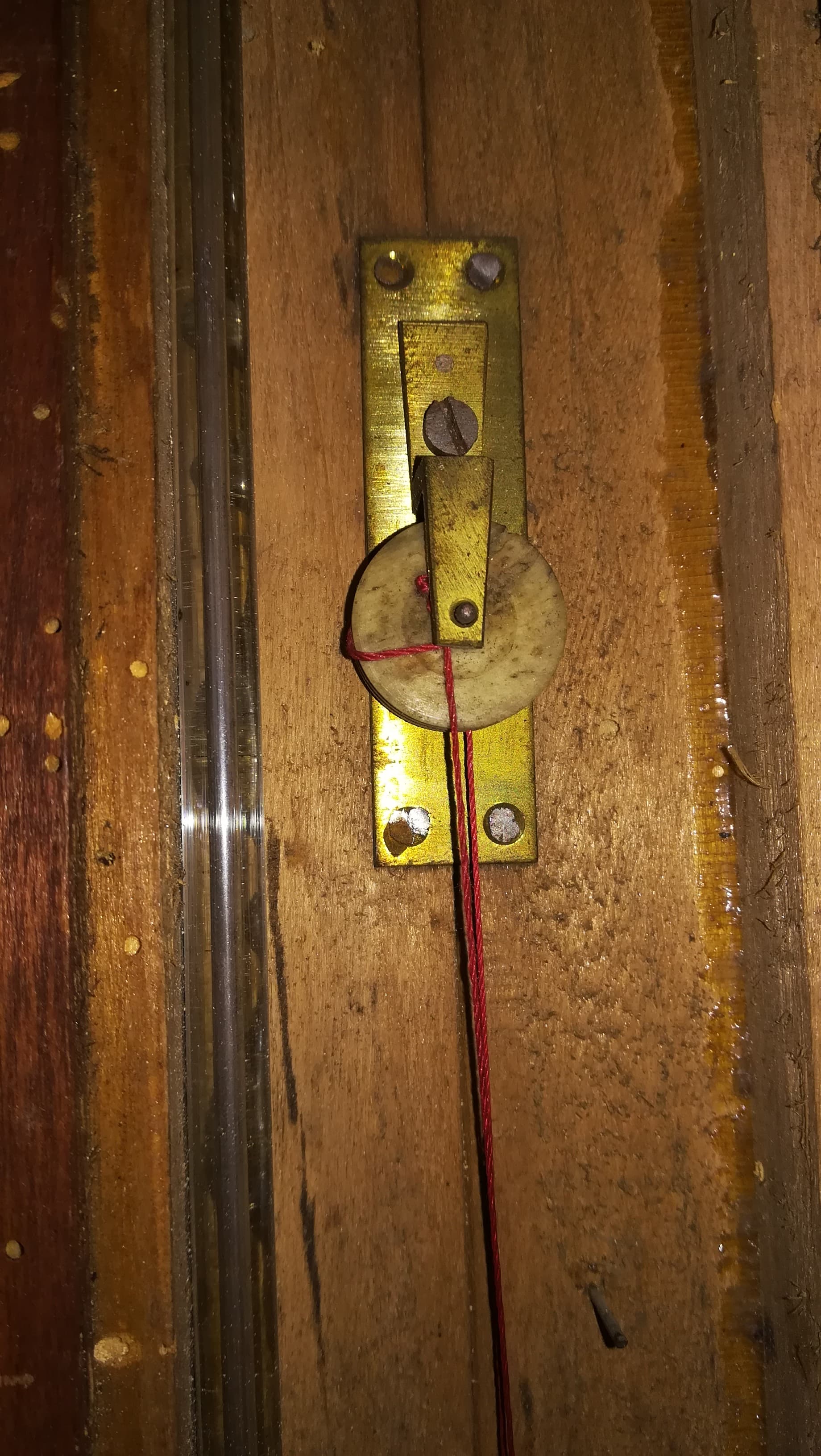 Il y a un tube qui contient le contrepoids. Il est pété ici mais c’est juste un tube classique, fermé en bas ou non. Peut être pour faciliter le glissement ?