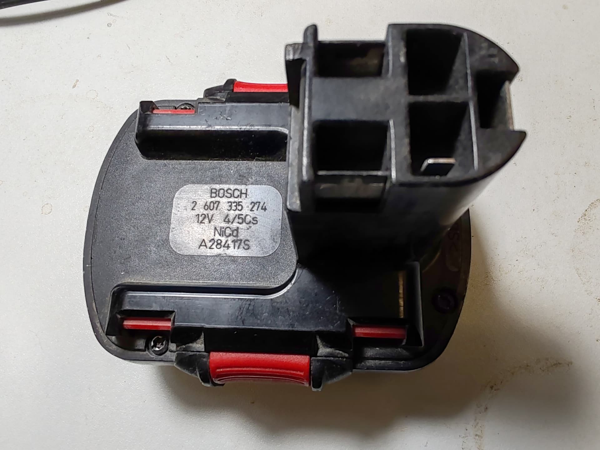 Deuxième cas : batteries récupérées pour BOSCH également mais tension 18 volts alors que ma perceuse fait 14,4v. Je me suis dit il suffit d’enlever un accu pour retrouver mes 14,4 v … SAUF que le chargeur ne sait pas qu’on a enlevé un accu et il envoie une tension bien trop élevée … j’ai failli bousiller mes accus … en fait en vérifiant je me suis aperçu qu’il y a un diviseur résistif dans l’accu qui indique au chargeur quelle tension envoyer selon le nombre de cellules … il faut de bons yeux car les résistances sont minuscules et planquées. après remplacement par les bonnes valeurs ça marche comme sur des roulettes.