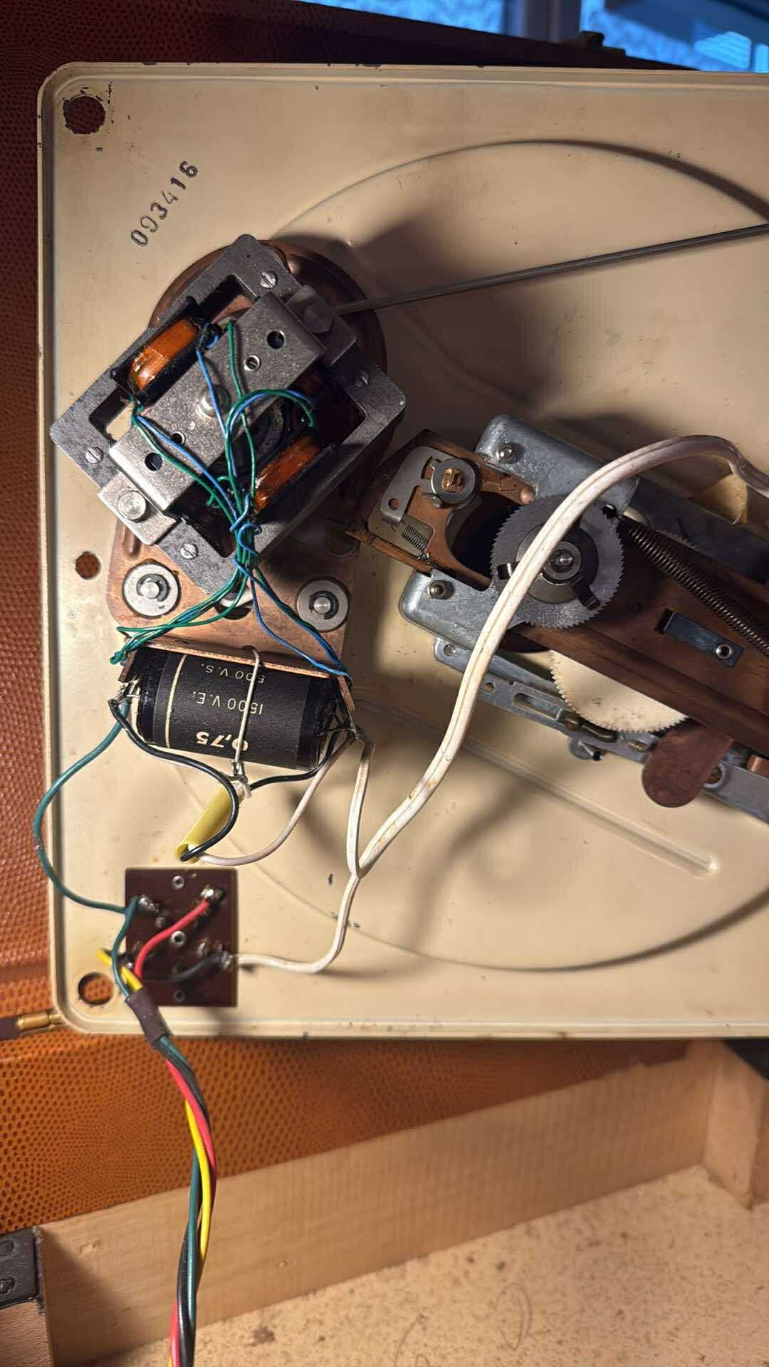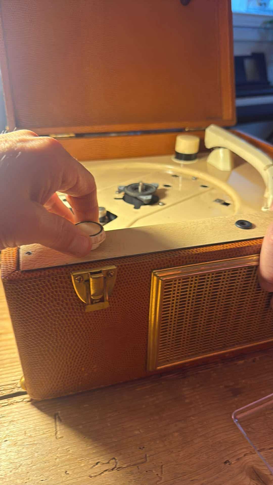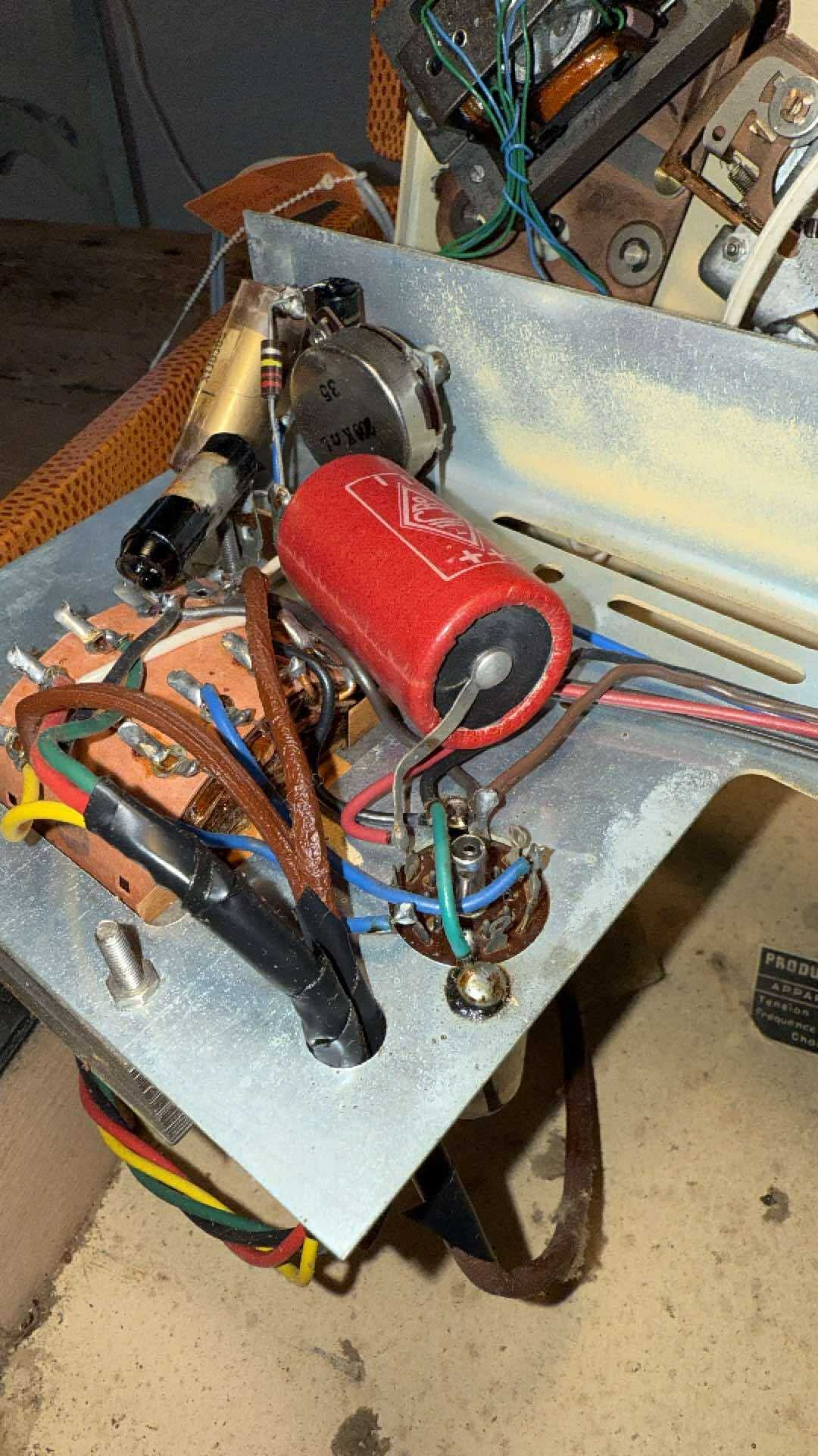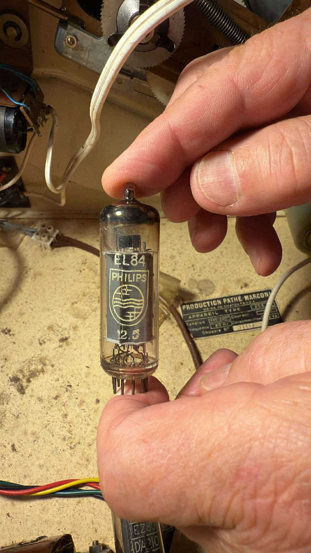 Avec ma chérie nous essayons de réparer un vieux tourne disque « valise » de la marque Pathé/Marconi. Aucune idée de sa date de fabrication.