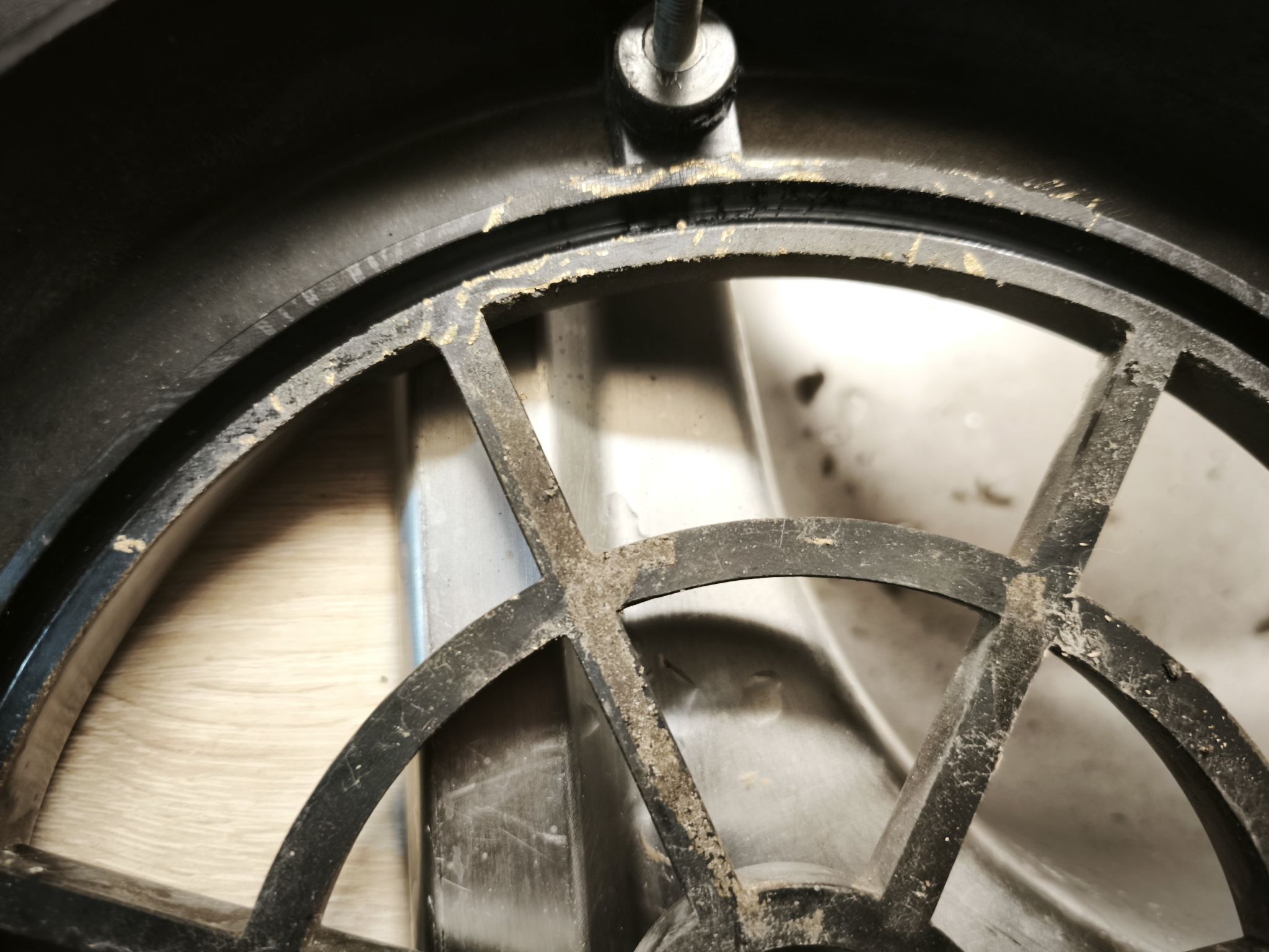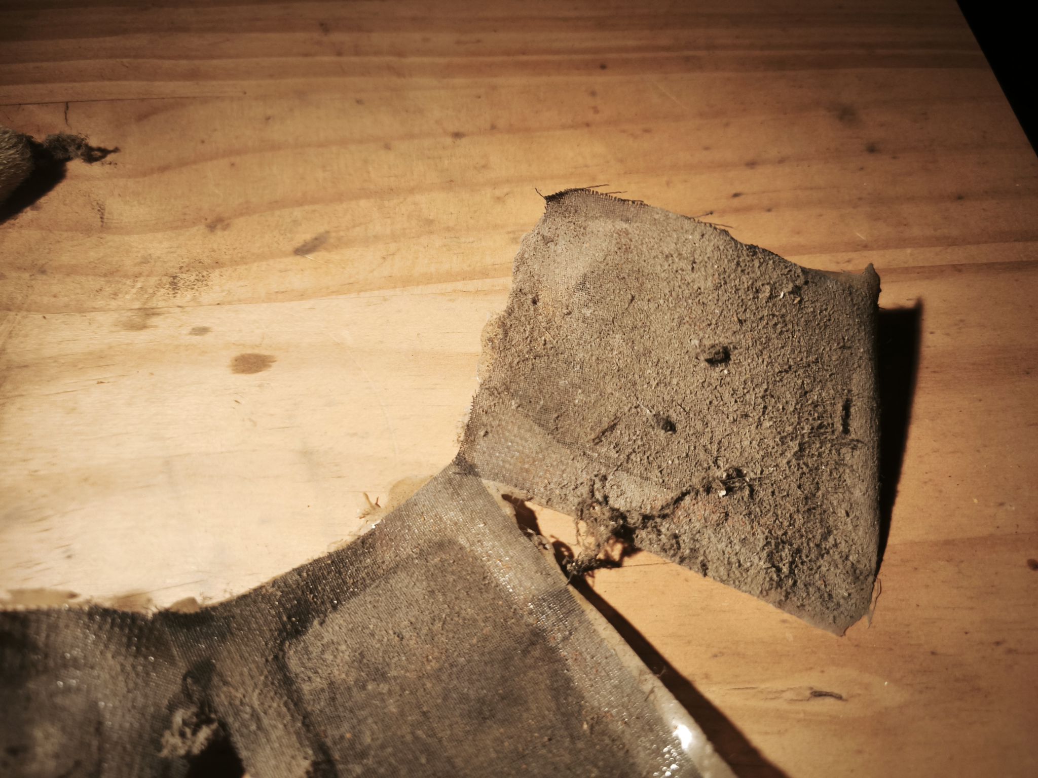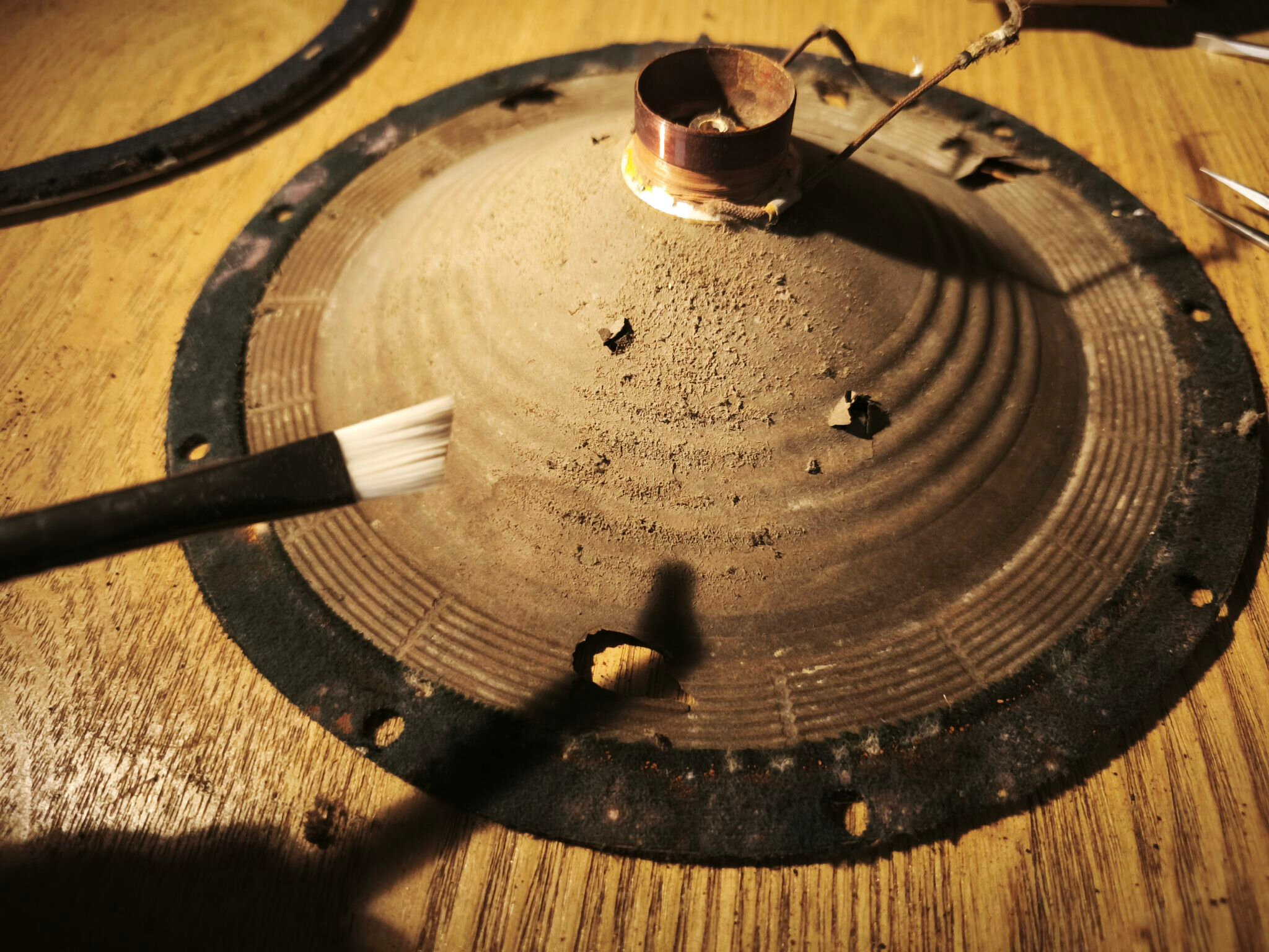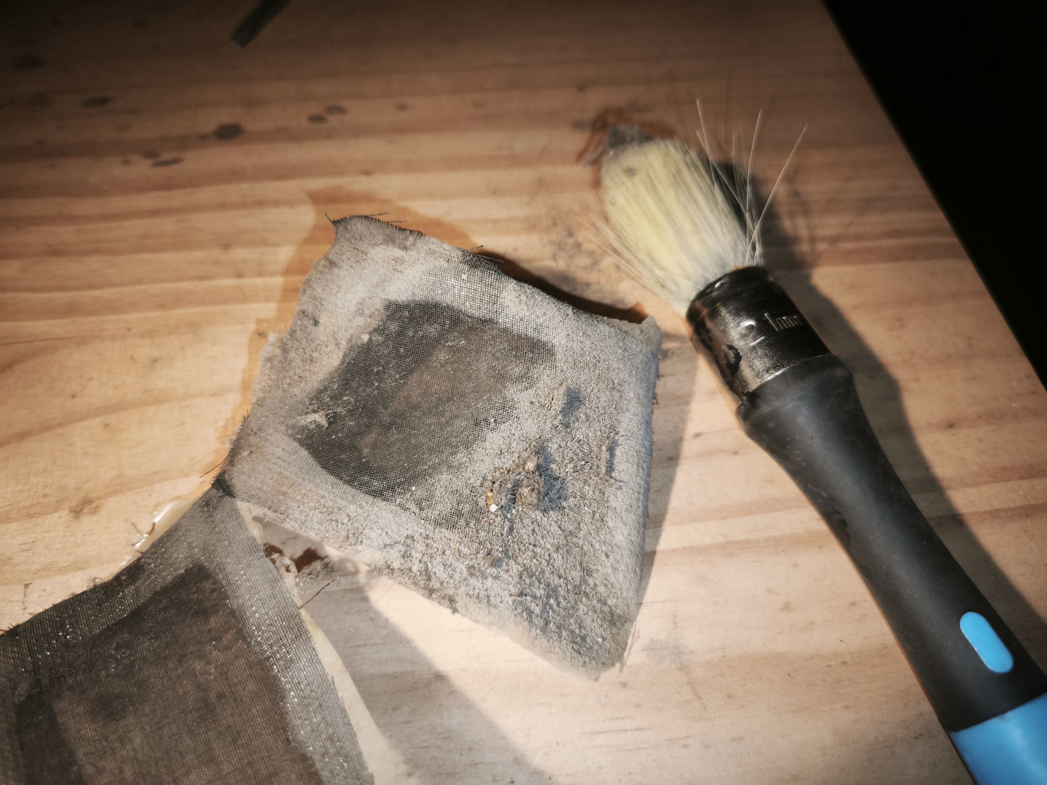 Je dépoussière la membrane et récupère tous les morceaux qui se détachent :