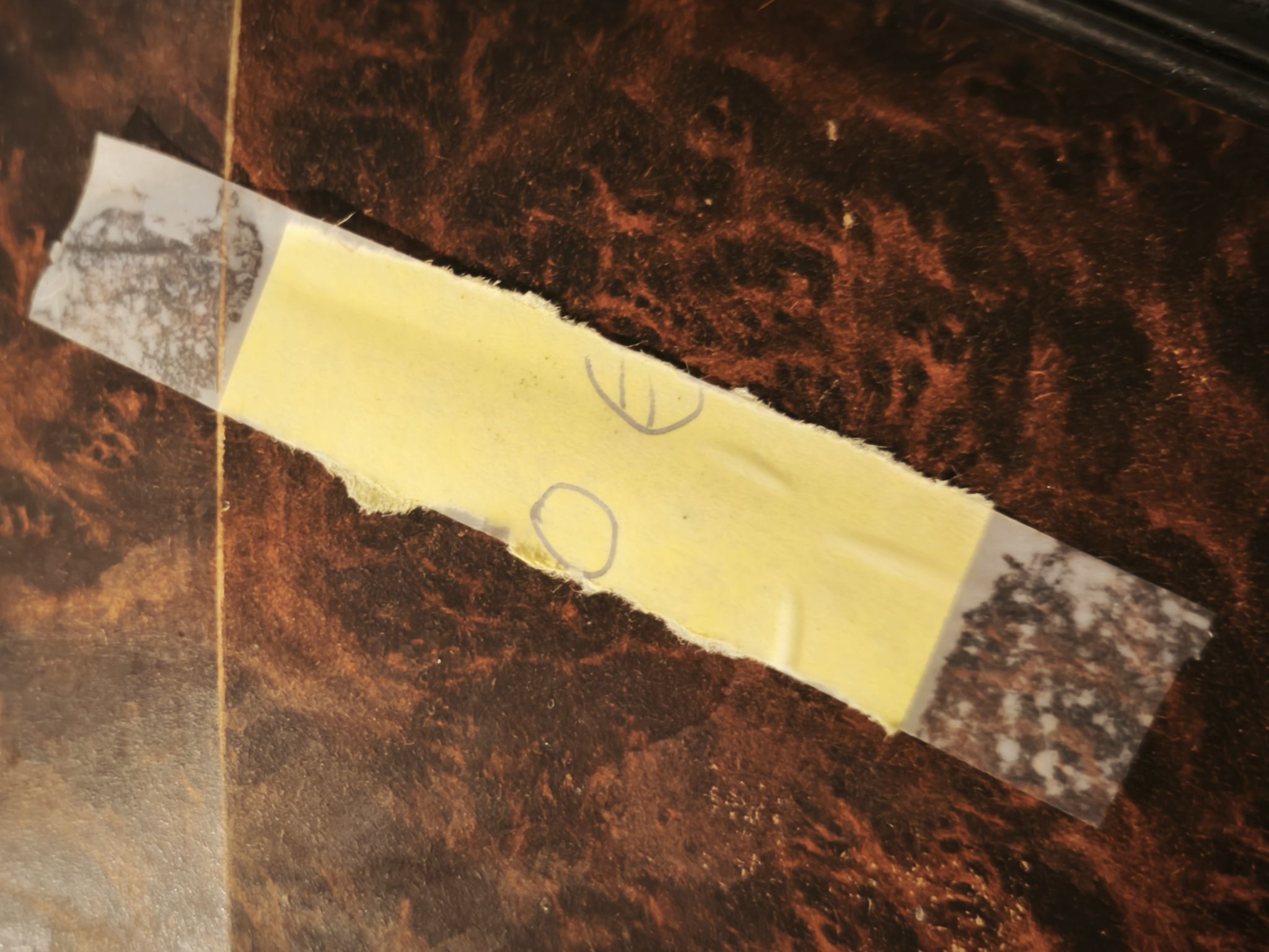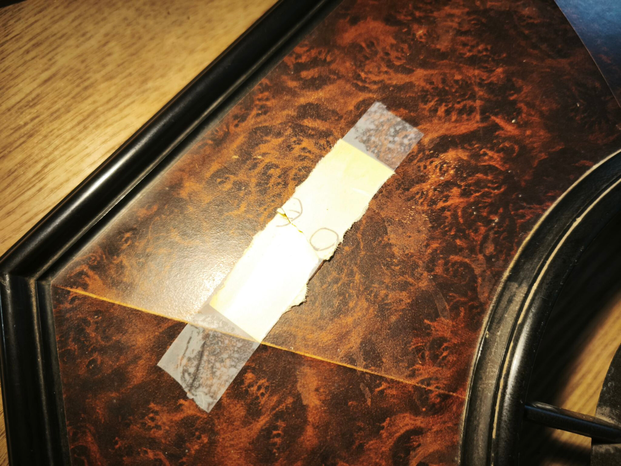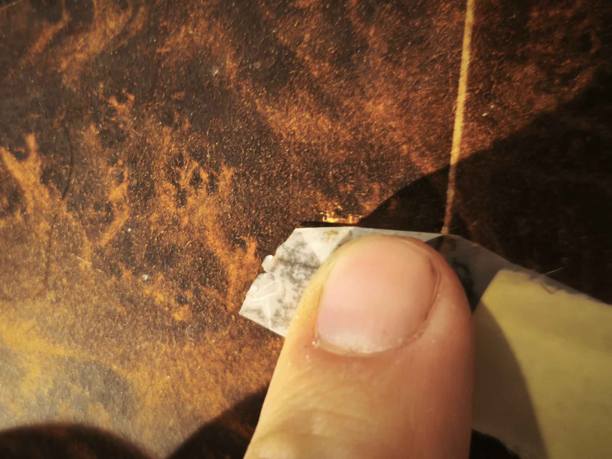 Je retire les morceaux de scotch restants. Une petite zone est déjà perdue car quelqu’un a essayé avant moi :